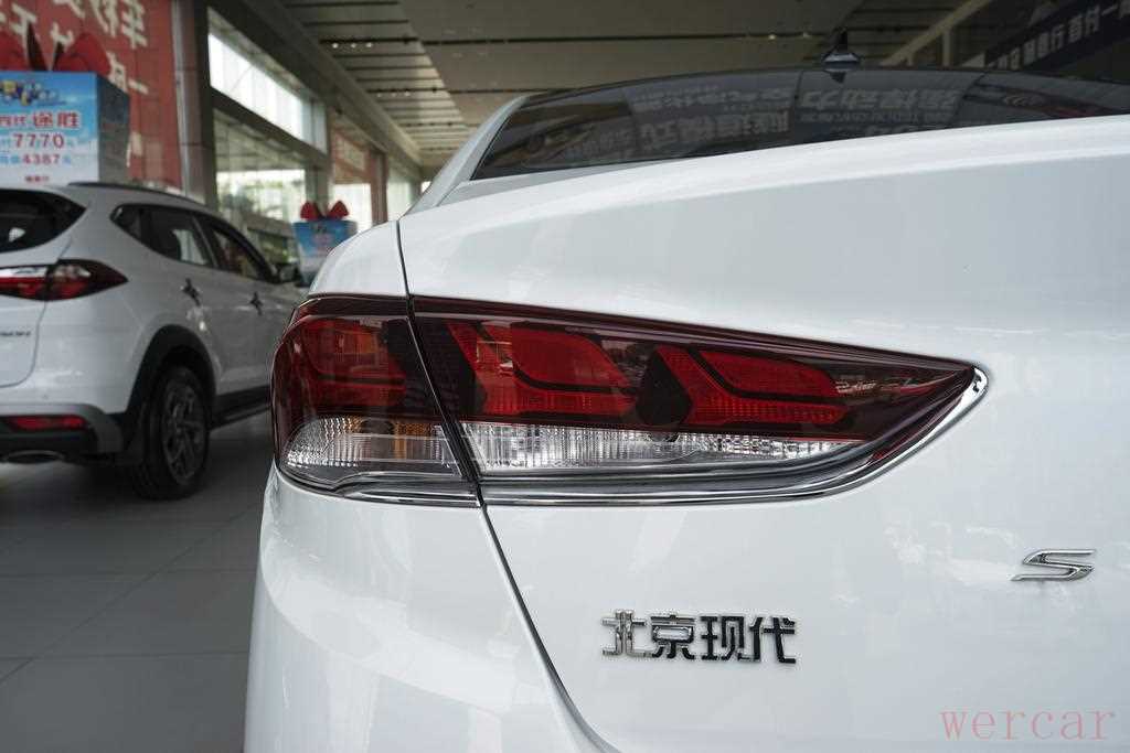 车尾的层次感看起来不是很明显,整体效果中规中矩,对于一些并不熟悉索纳塔九的人来说,找到后备箱的按键也并不容易,后包围下部分的黑色高亮材质看起来很运动,大灯的设计比较中规中矩,点亮后也并不会有什么辨识度。