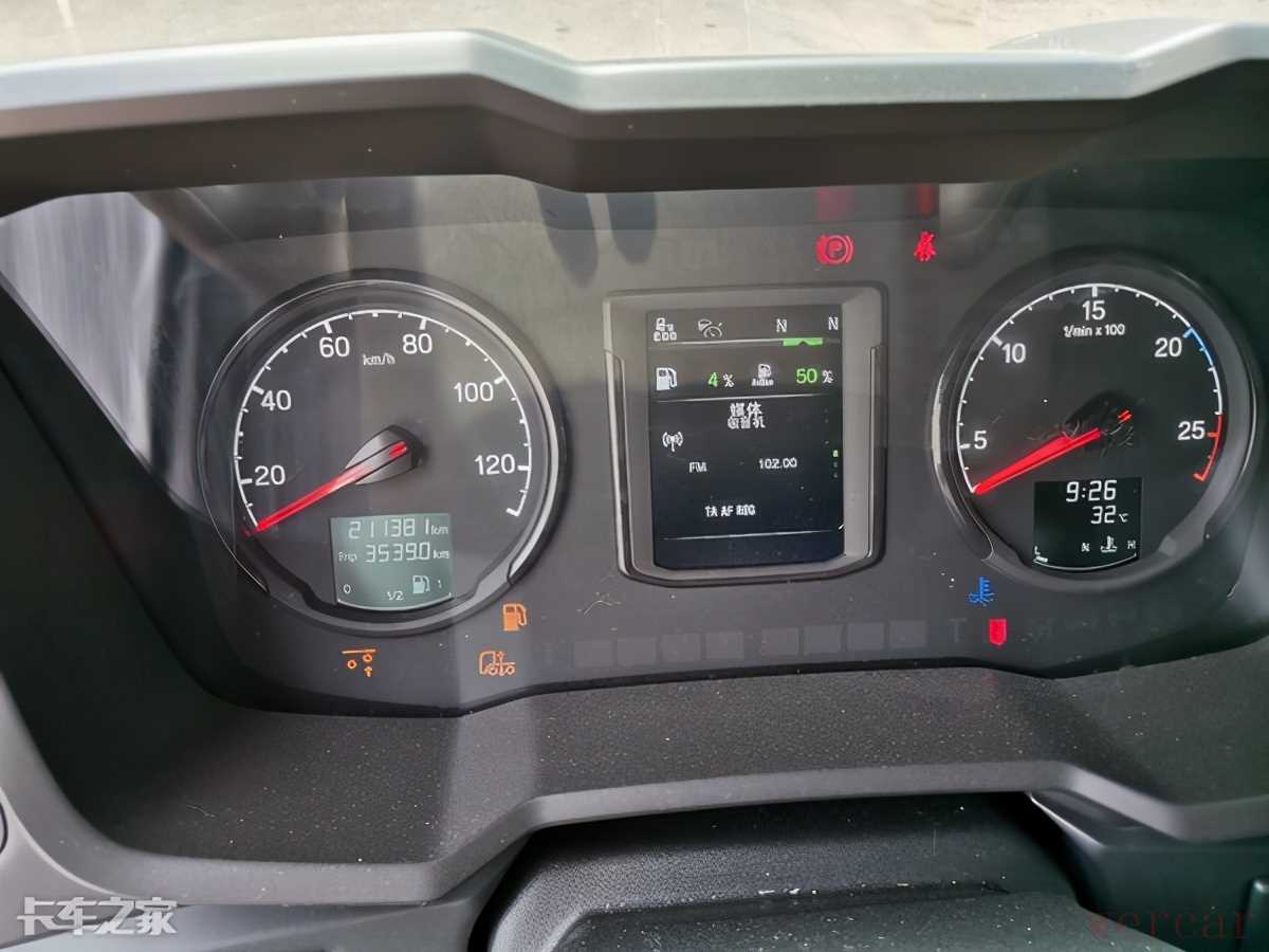双油箱总容积达到了1000L,如果按照百公里30L油耗计算,续航能力轻轻松松达到3000km以上,上海到广州跑一个来回不用加油。在针对高效物流时,降低了进站加油所耽误的时间成本。