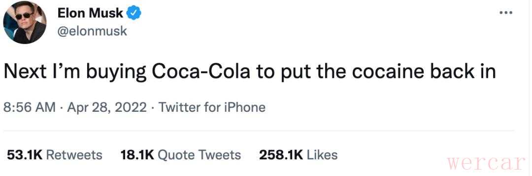 近日,马斯克在推特上表示,接下来,我要收购可口可乐,将可卡因再放到里边。