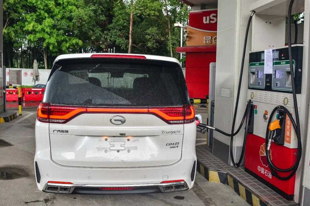 然后在加油站用油枪加油至自动跳枪,GM8加注的是95号汽油。