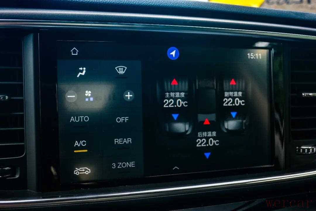 空调风量方面,则是统一22℃并控制2格出风量,外循环模式。