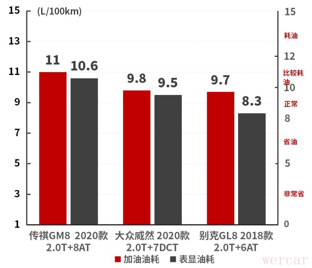 作为一款2吨重的MPV来说,11L的油耗算是在情理之中。不过相对于旧款6AT来说,换了新的变速箱反而油耗升高了0.7L,这其中可能有温度的影响以及交通路况的变化。但忽略这些因素来看,新旧款车型在油耗方面并无太大变化。相比起同级竞品,油耗还是略高。