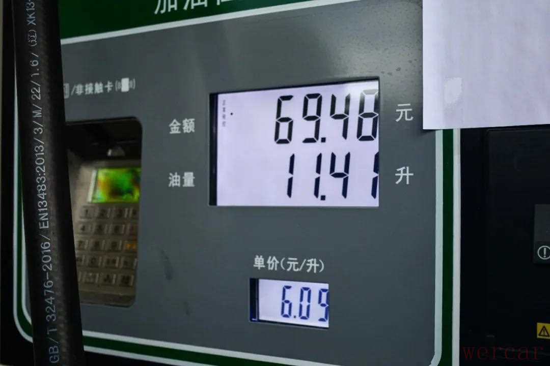 加油机显示加了11.41L汽油,油费一共69.48元,我们来算一下它的实际油耗:GM8表显行驶里程为103.0km,实际加油量为11.41L,于是用11.41÷103×100,算出来的平均油耗为11L/100km。