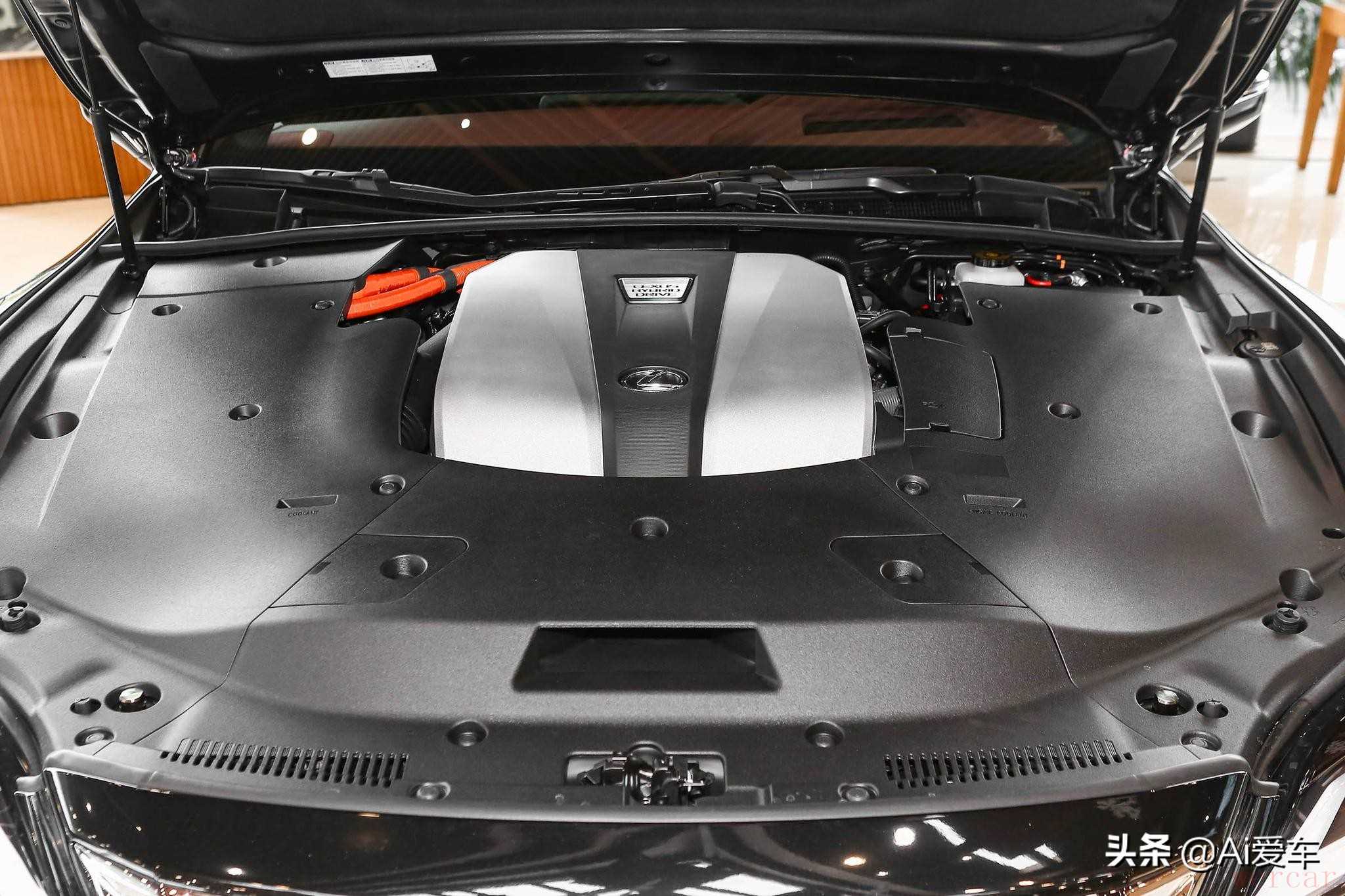 雷克萨斯LS 2021款 500h 行政版动力上使用3.5L 299马力 V6 油电混动,以及178马力的电动机,匹配E-CVT+AT(模拟10挡),官方百公里加速时间5.4s,工信部百公里油耗7.0L。引擎盖子上方做了不错的隔音处理。