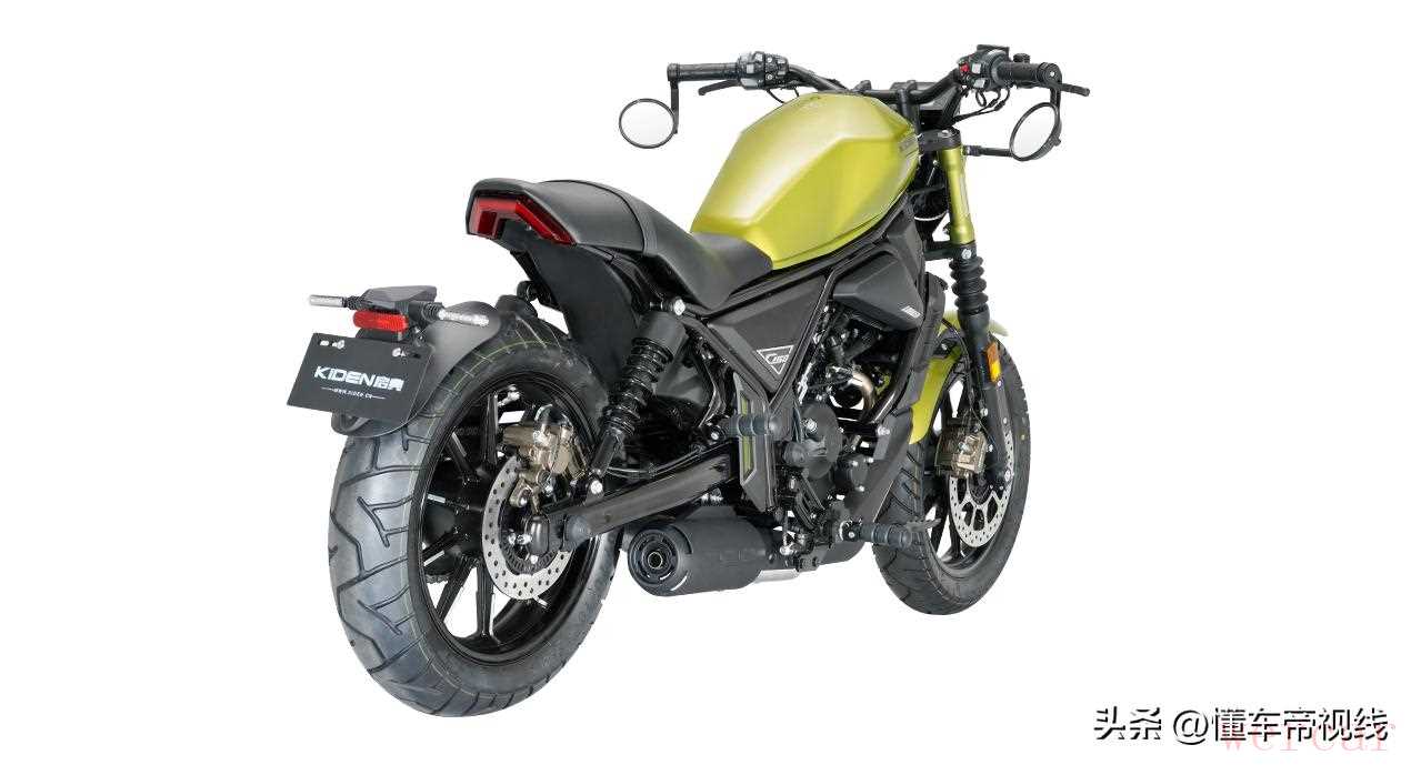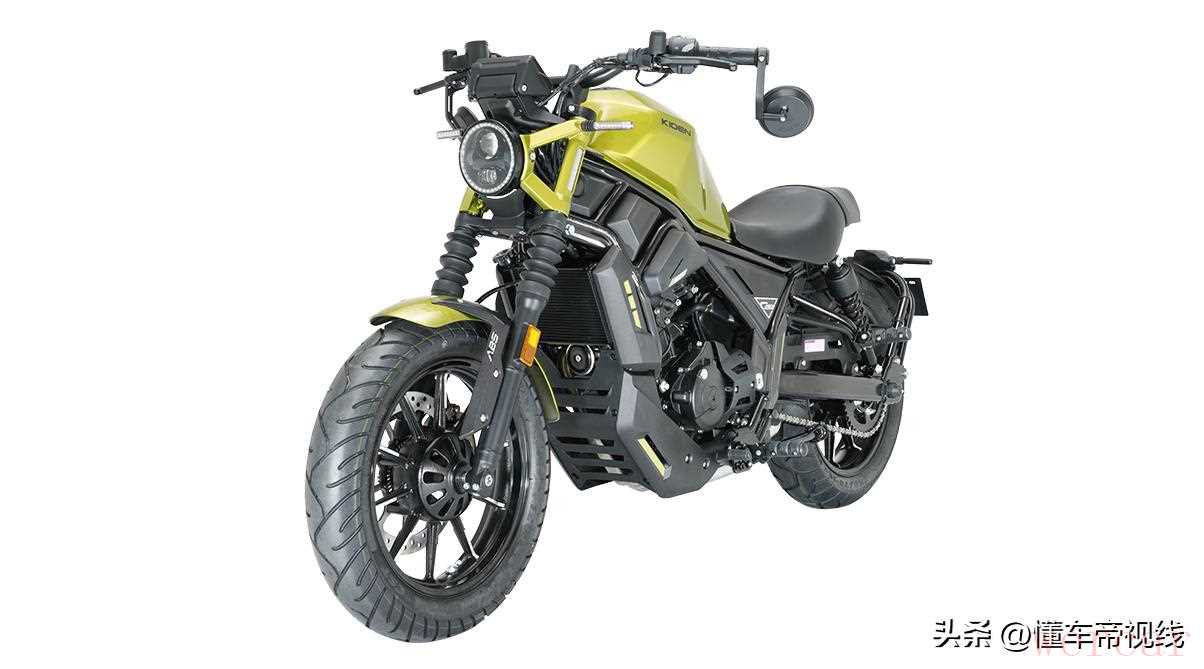 从车型命名不难看出,新车定位为小排量巡航街车,外观设计方面,其车身线条平直,偏向营造机甲风格,这也是启典摩托一直以来的家族化设计理念。车辆前部视觉重心较高,配备有下挂式后视镜、运动型油箱、后摇臂挡泥板以及短尾坐垫。