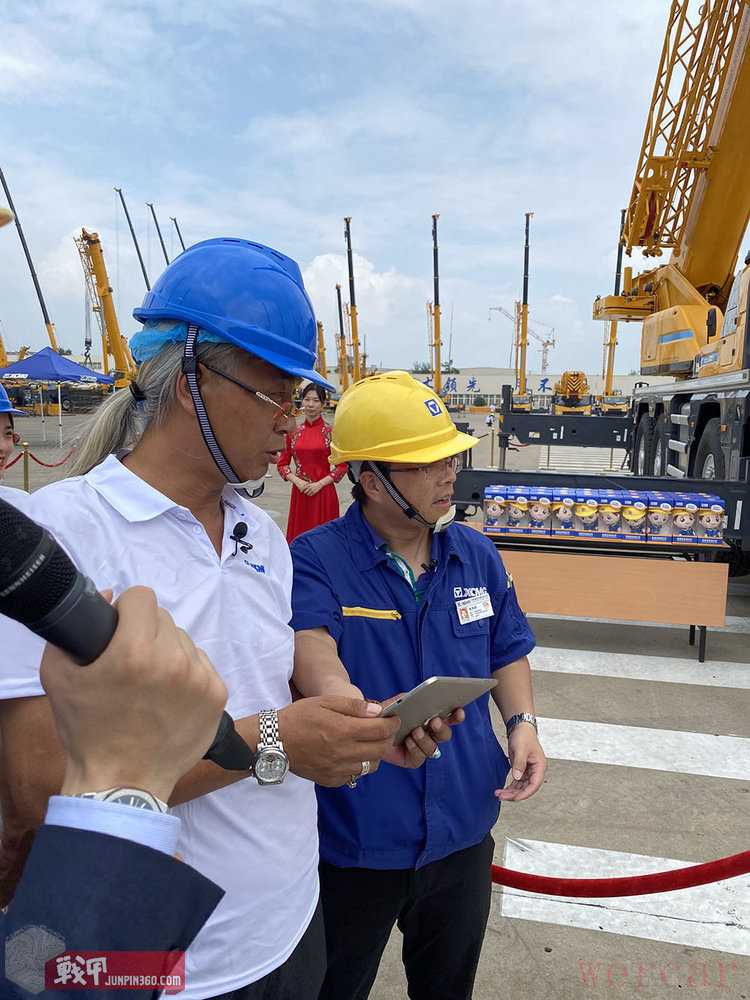 现场可以尝试通过手机操作起重机,裸枪老师就用手机遥控将徐工玩具送到大家手里。