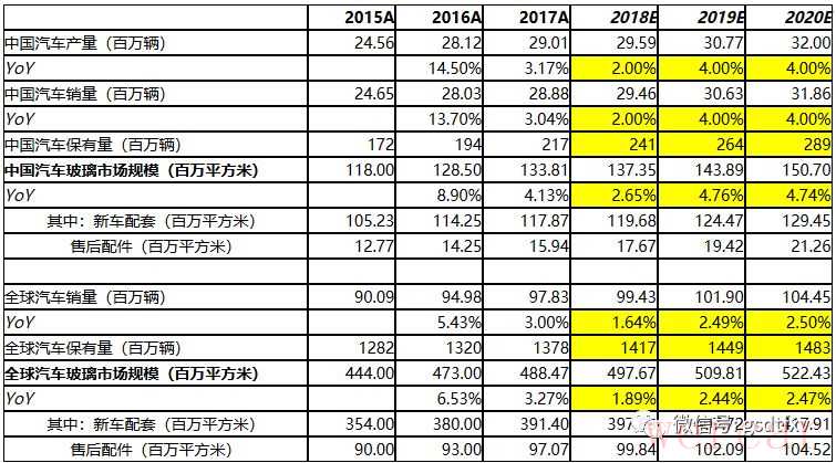 全球市场来看的话,2017年全球市场销量9783万辆,保有量达到了14.17亿辆,预计18年销量增长1.6%,此后两年销量增长2.5%左右,在这样的情况下,全球玻璃市场规模在销量方面能增长2%左右。