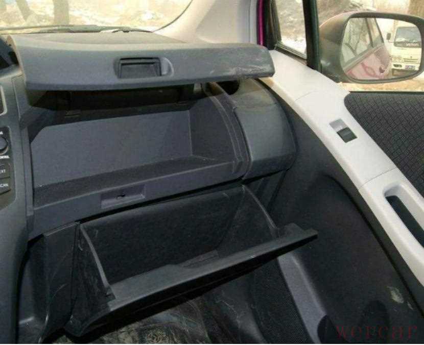 手套箱还可以形成上下开合,不仅造型新颖,还能获取更多的储物空间,所以在车内空间利用率上,我就服丰田、本田的设计师。