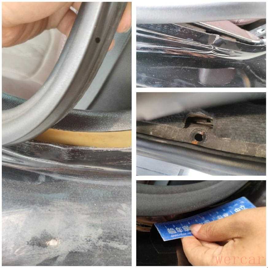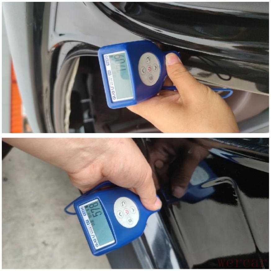 继续往后检测,从车尾到车身另一侧,情况依旧没有任何好转。漆面就不要说了,全车没一个好的地方,里里外外几乎都有过修复,甚至右前右后门槛拆开饰板还能清晰的看见当时变形的痕迹,整车从前到后,从左到右,就没有一处地方是能让人省心的。