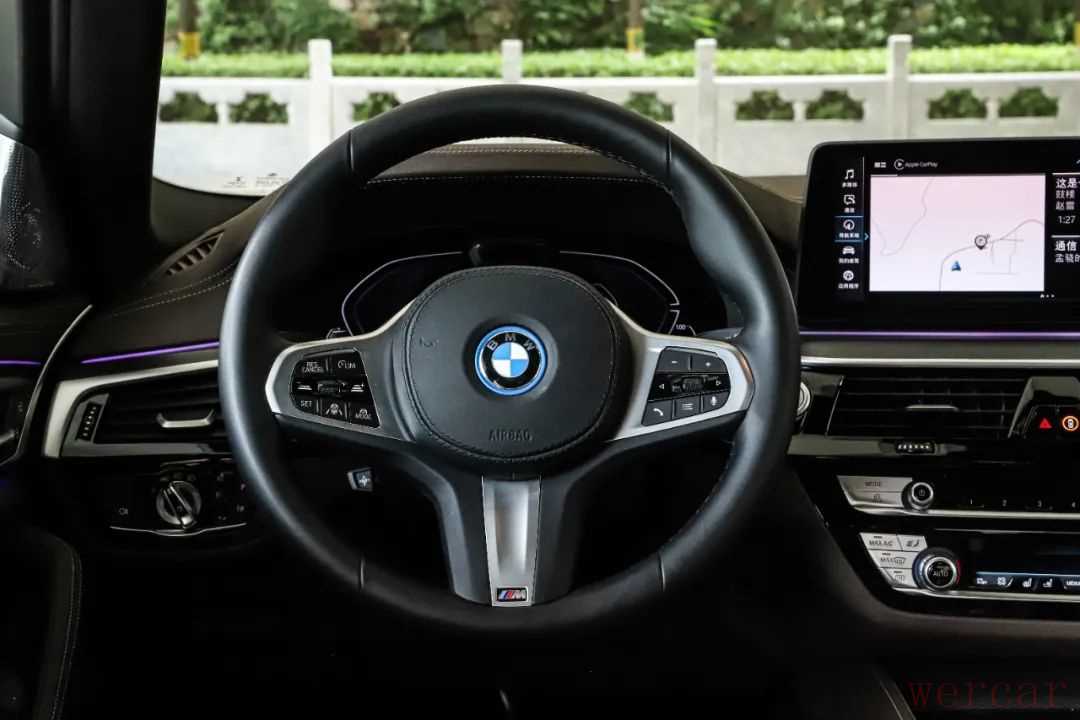 在HYBRID模式下,得益于电机的加持,即便这台车整备质量超过了2吨,动力响应也是足够的积极,爆发力很足,相比同样配备2.0T低功率发动机的525Li车型要明显轻快不少,这样的表现在市区里足够得心应手。在电量充足的情况下,发动机介入的次数极少,除了大脚油门的状态下,日常超车和起步你完全可以把它看作一台电动车。