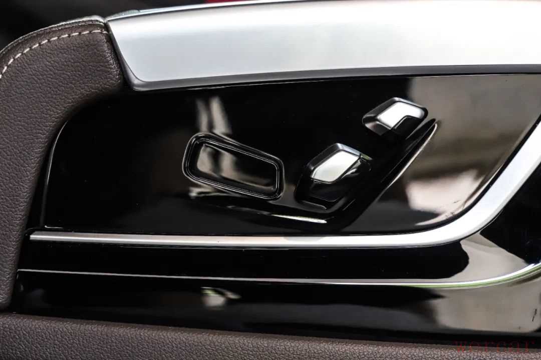 宽大的后排座椅舒适度极高,采用Sensatec合成皮,摩卡色+象牙白的配色符合一台行政轿车该有的气场。后排座椅调节以及娱乐是行政级座驾必不可少的玩物,两块屏幕支持HDMI输入,可独立控制也可与前排联动。