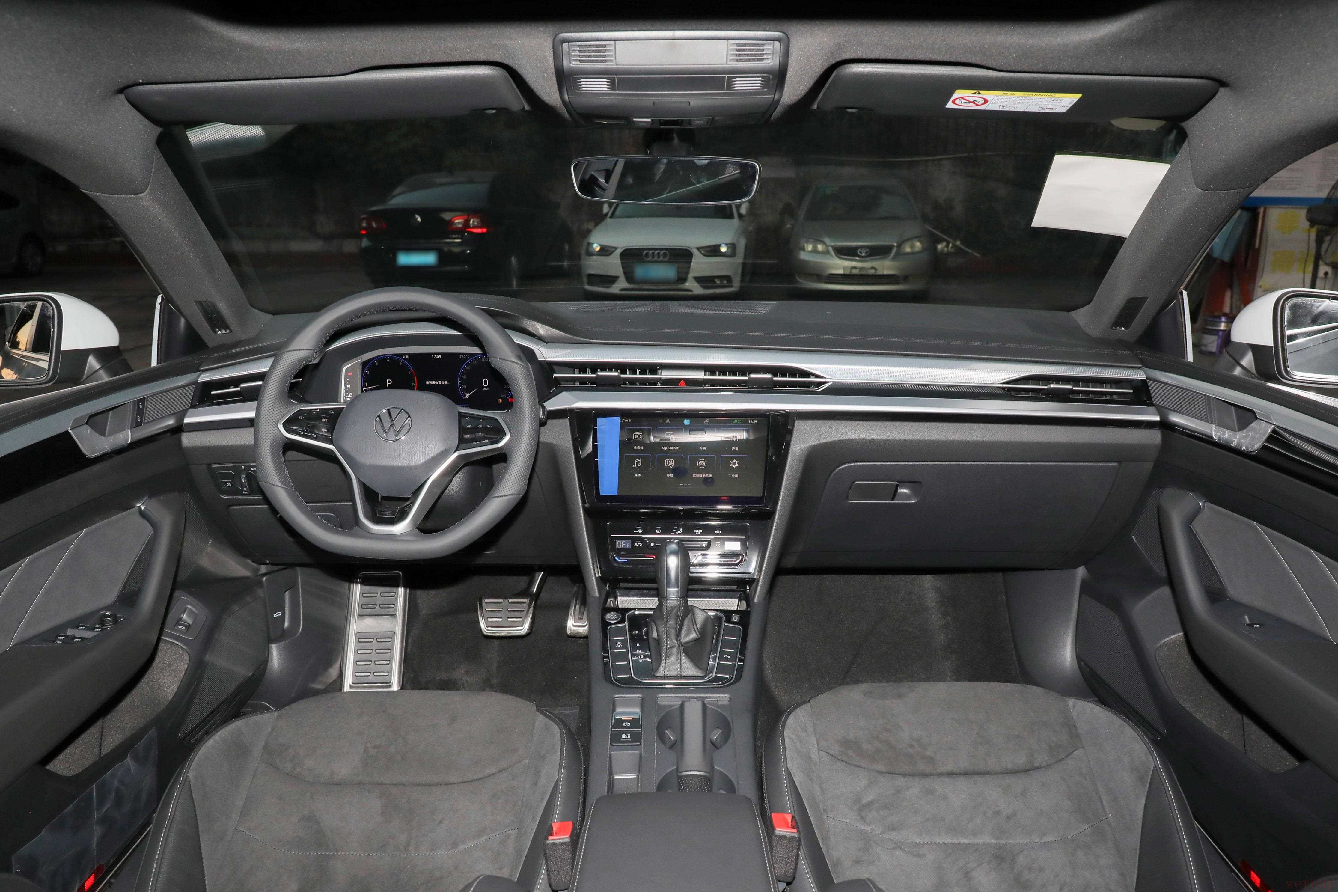 CC 的 “帅” 是系统性的:前脸多条幅镀铬中网与大灯无缝融合,整体性强,没有多余设计;侧面一条腰线贯穿头尾,搭配前后叶子板的立体线条,让车身显得修长动感 —— 不过这类线条容易藏灰,想保持颜值需常清洗。车尾未跟风贯穿式尾灯,简洁造型反而更耐看不显审美疲劳,掀背尾门既实用又强化了轿跑气质。