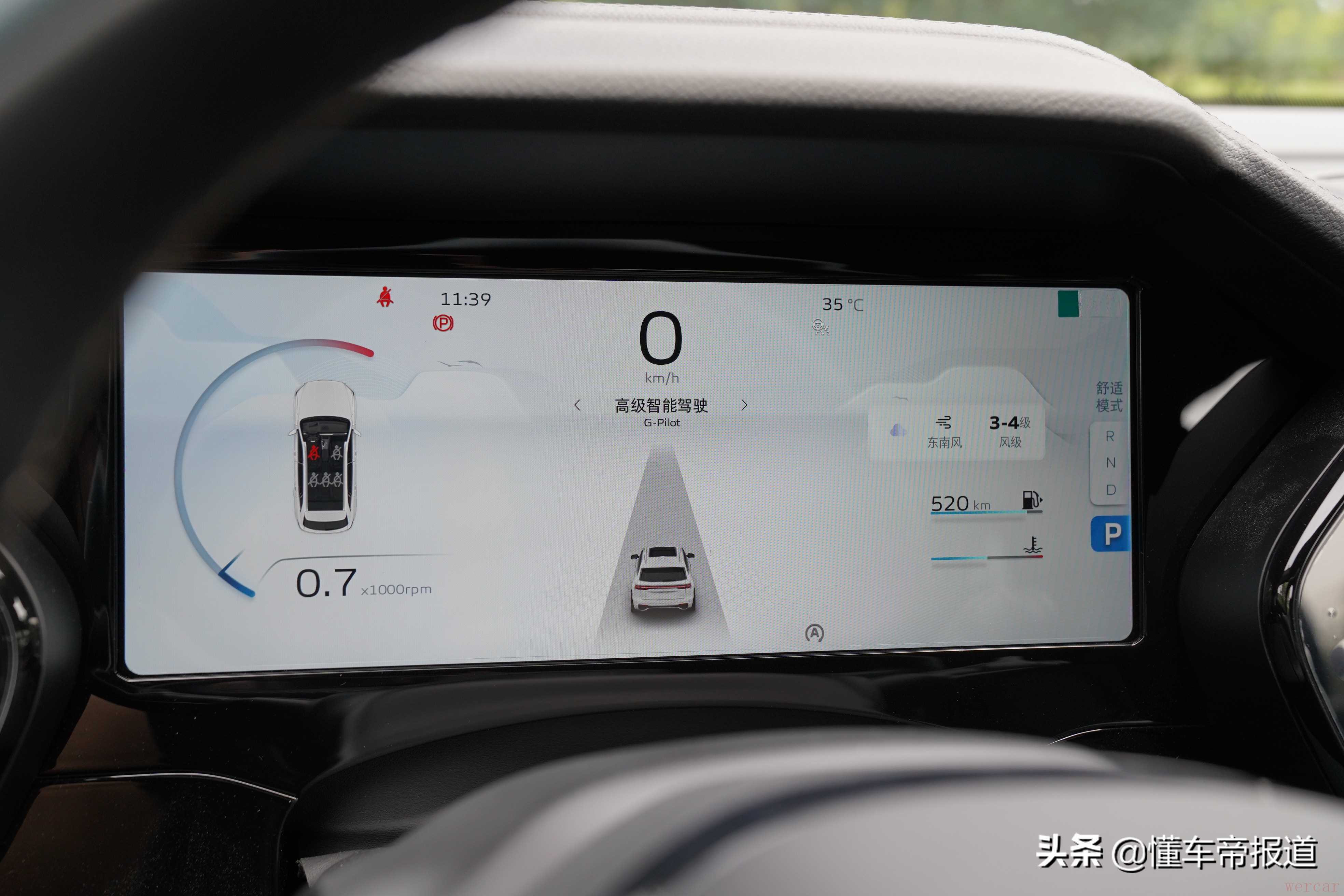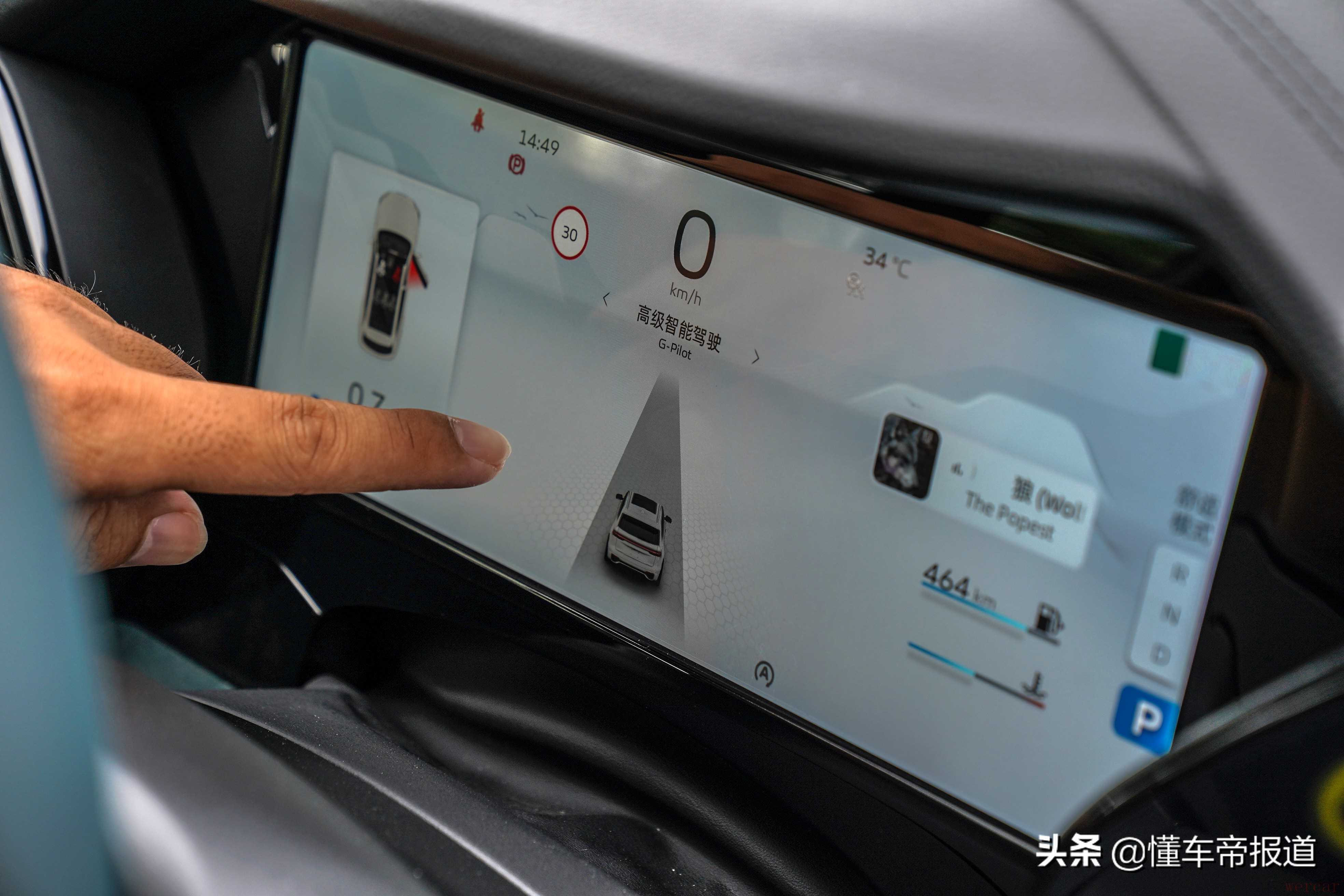 在驾驶过程中,我们也对车辆配备的ACC全速自适应巡航进行了体验,它支持0-150公里/小时带限速的自动调节。实际使用过程中,前方的液晶仪表盘能显示当前车道及两侧车道上的汽车、摩托车等,为驾驶者行车提供参考,车辆跟车距离有三挡可调,操作方向盘上的拨杆车速会以“+1公里/小时”的速度提升。