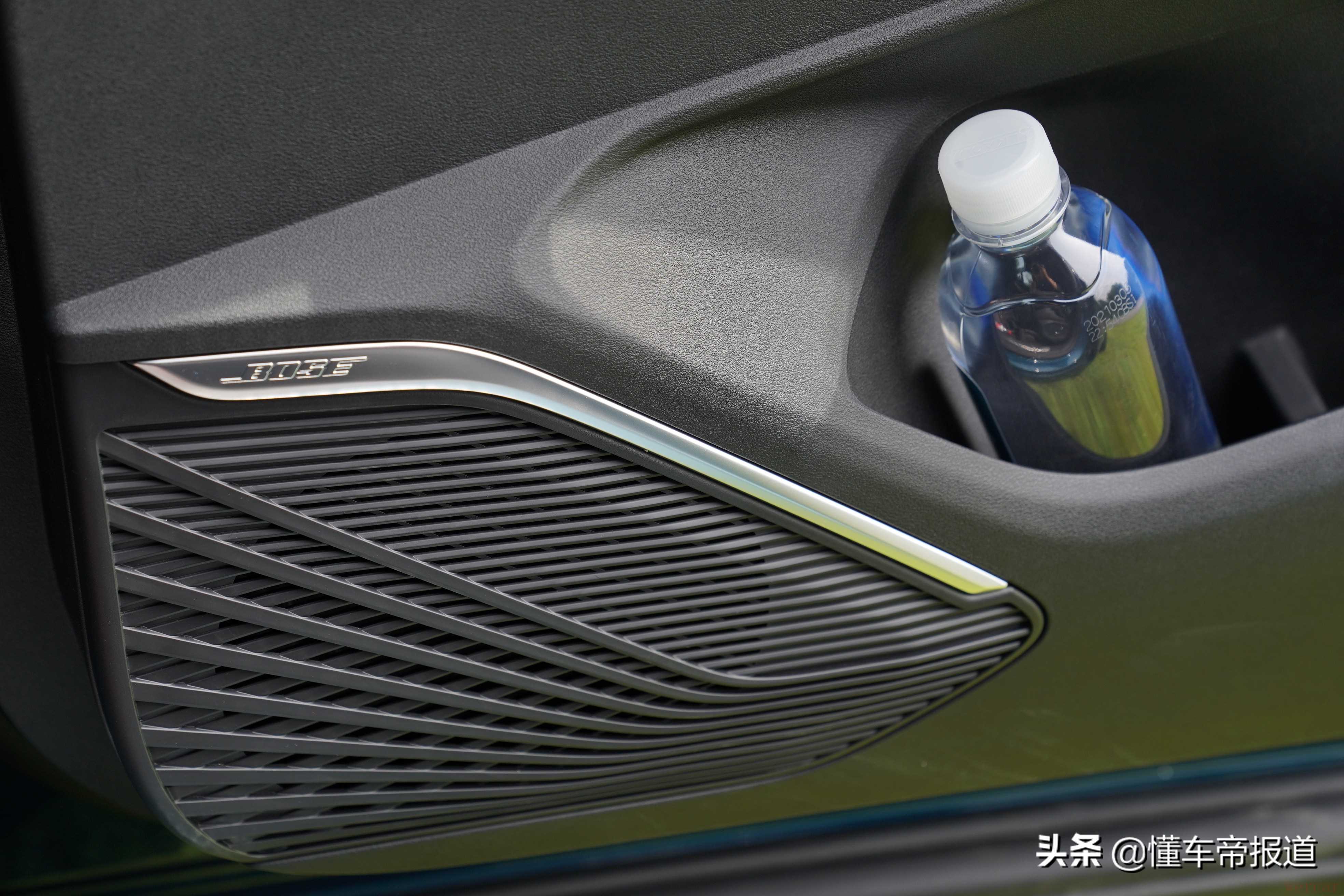 在中高速路段行驶时,车辆还是保持了一定的路感,风噪被控制在较低的水平,轮胎滚动噪音以及底盘传递到车内的高频振动也被较大程度的过滤,车内整体呈现出不错的隔音静谧性表现,为BOSE音响的发挥创造了条件。