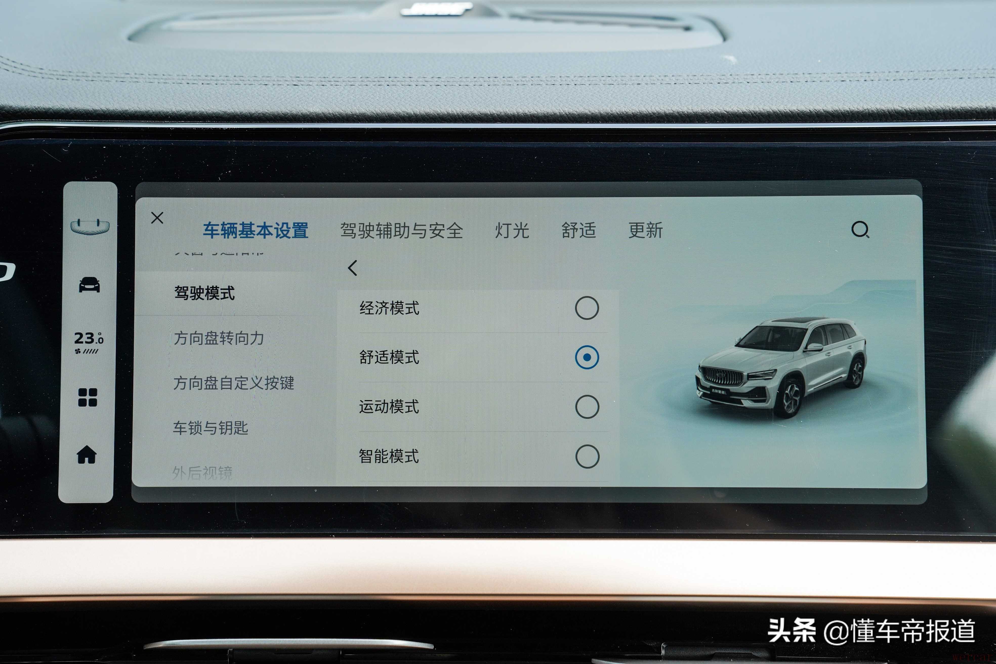 另外,星越L的驾驶模式切换旋钮,转动方向与屏幕上驾驶模式的切换是反向的,初上手时还略有不习惯,不过对于真正的车主来说,摸清规律后就能较为方便的调整到自己想要的驾驶模式。当然,对于未来版本的星越L,改变这个操作逻辑应该也是轻而易举的,毕竟星越L是支持全车FOTA远程升级的。