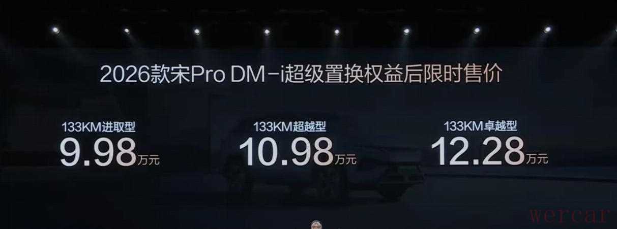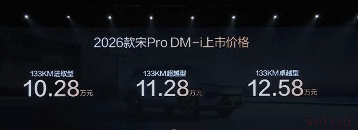 2026款宋Pro DM-i超越型在此基础上增加天神之眼C-辅助驾驶三目版(DiPilot 100)、高快领航辅助、ACC自适应巡航、ICC车道巡航辅助、APA泊车辅助、AEB主动刹车、外后视镜电动折叠、无麦K歌、哨兵模式、电动尾门、前排50瓦手机无线快充等配置,指导价也高出1万元。