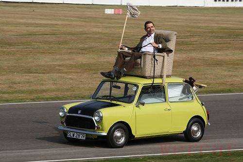 那部黄色的MINI就像一个哥们儿一样陪着憨豆,