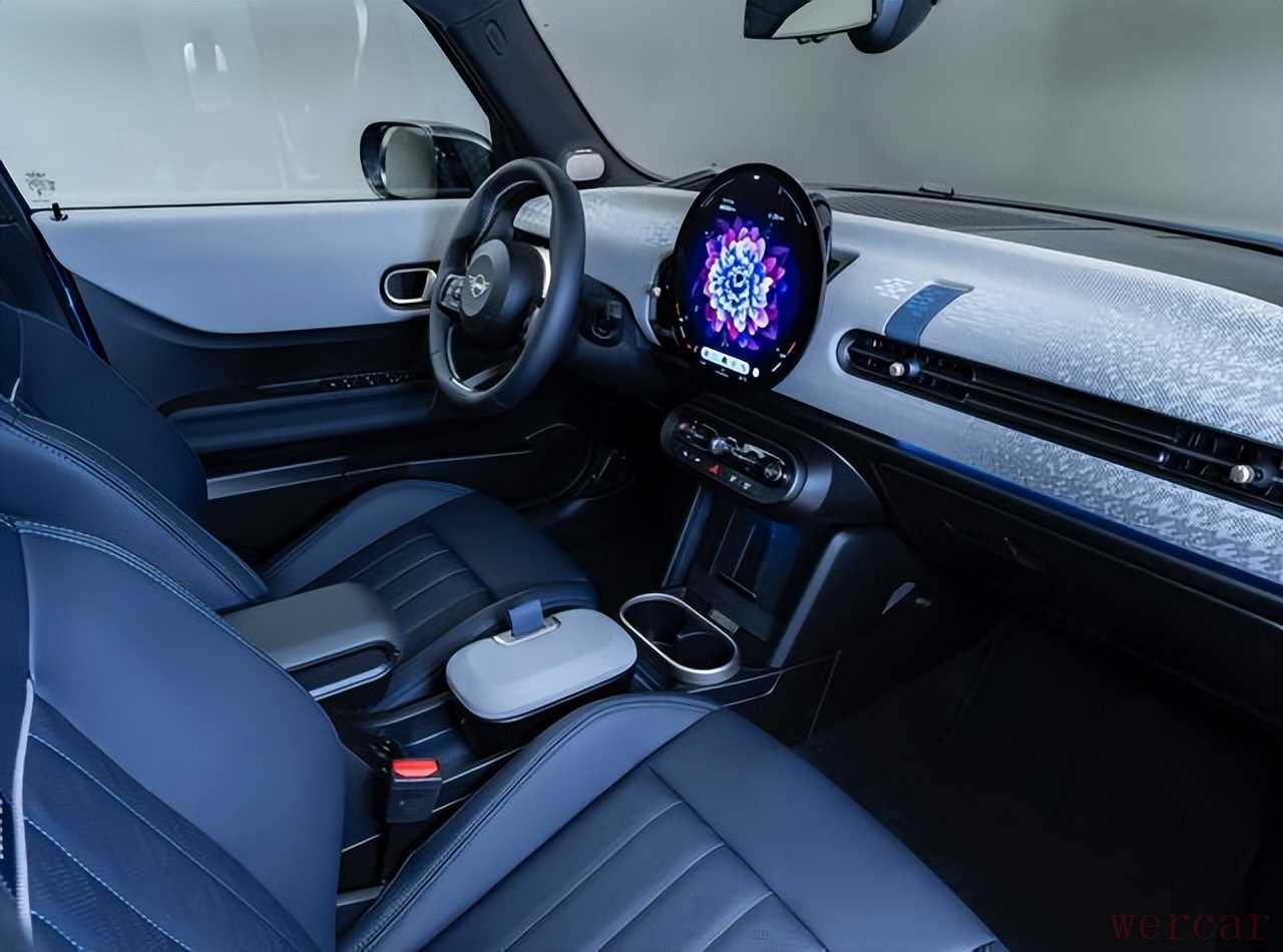 内饰的设计却十分新潮,选用了黑灰色为主的色调搭配,大面积软性环保材质的铺装,座椅还选用了织物面料,五门版车型增加了后排座椅以及乘坐空间,并在中间的通道扶手后面设置了杯架以及Type-C的充电口,提供了更多的扩展性和实用性。中控台配备了经典的双幅式多功能方向盘,类似摩托罗拉Aura R1的62克拉蓝宝石圆形屏,尺寸达到了8.8英寸,功能上支持Carplay、Carlife、车联网等功能。配置也有很大提升,将配备UWB数字钥匙、圆形OLED中控屏、双向投影氛围灯、ABS+DSCi辅助、L2智驾辅助、电动调节座椅、座椅按摩、萌宠Spike智能个人助理以及丰富的影音娱乐。