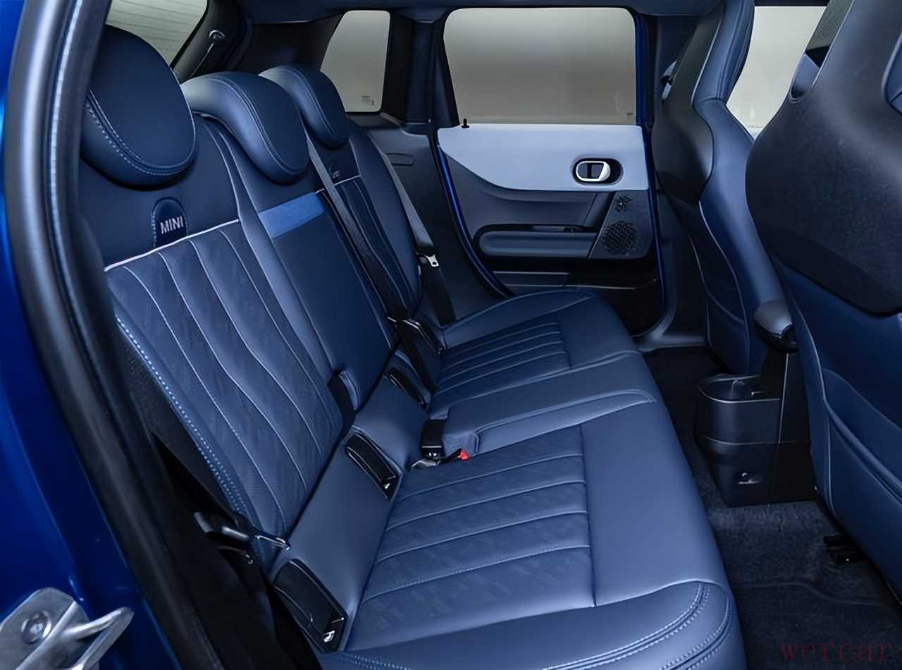 MINI COOPER的车身依旧十分经典,黑色的车顶、黑色的倾斜的A柱、B柱、C柱和D柱采用了一体式黑色结构,反光镜外壳采用了亮黑色设计,配合着四个黑色门把手设计和蓝色漆面的车身,十分耐看经典。外观上增加了JCW运动套件,宽大的进气口、尾部的散热器设计富有战斗气息,也营造出性能车的感觉。只不过采用了18英寸的铝合金轮圈和隐藏式排气管,却显得有些低调、内敛。车身尺寸方面,Mini Cooper S艺术家 五门版的长宽高4035*1744*1467mm,轴距2567mm,新车后排座椅折叠后可拥有923升的空间容积,是Mini汽车家族中最经典、最实用的一款小型车。