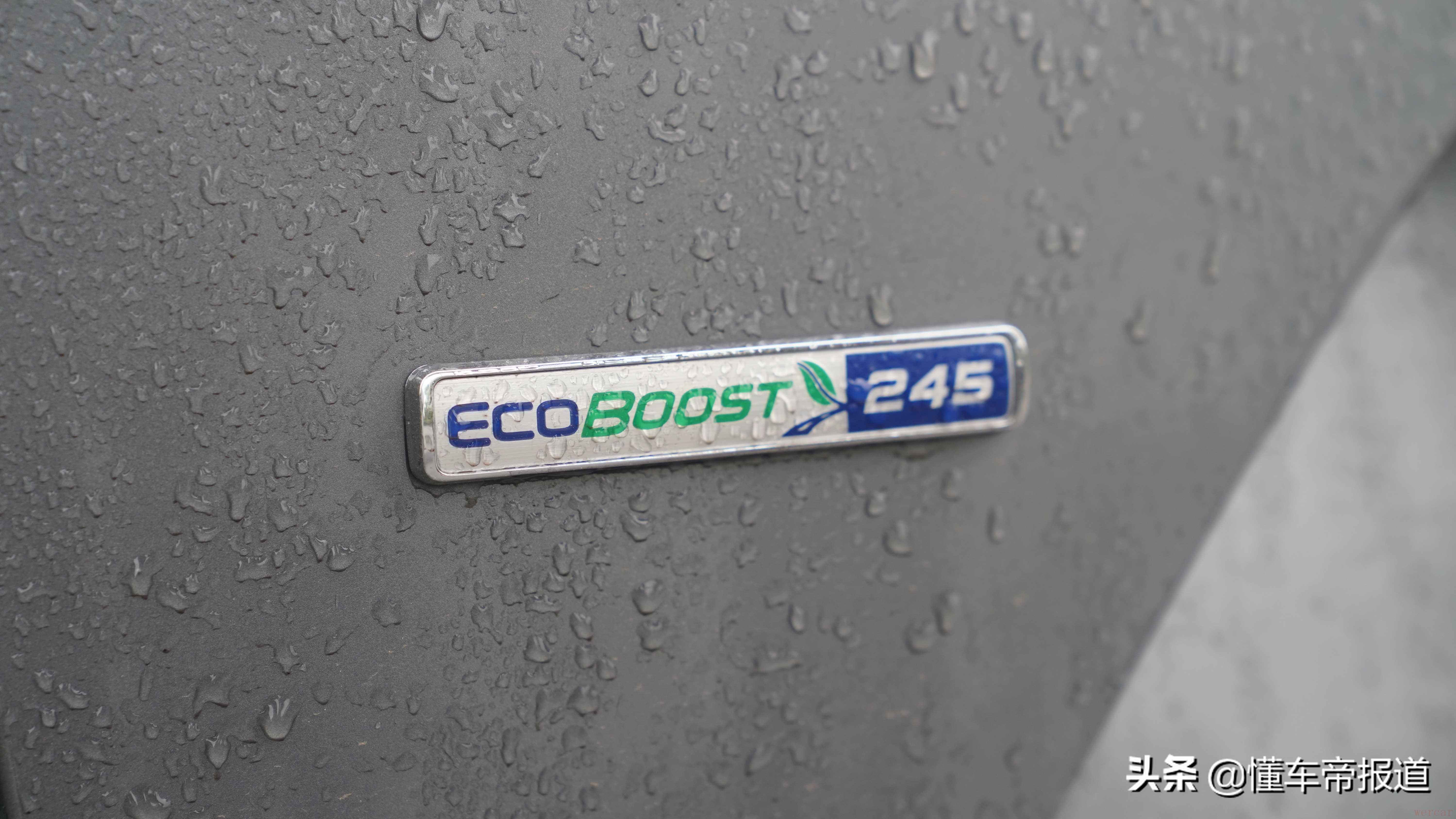 底盘采用前麦弗逊后多连杆的独立悬挂形式,调教保持了福特一贯的特点,保证舒适性的同时有一定运动感,面对细碎的震动还是能过滤得比较彻底,而在路面较大的颠簸或过减速带时,悬架回弹迅速干脆,底盘紧绷扎实,侧向支撑也足够硬朗,刹车踏板也并没有因为这是一台SUV车型而刻意留出太多虚位,轻踩就有明显的制动感受,就是刹车踏板的角度对我来说稍微有一些高,面对走走停停需要经常与加速踏板切换时,脚腕容易疲倦。