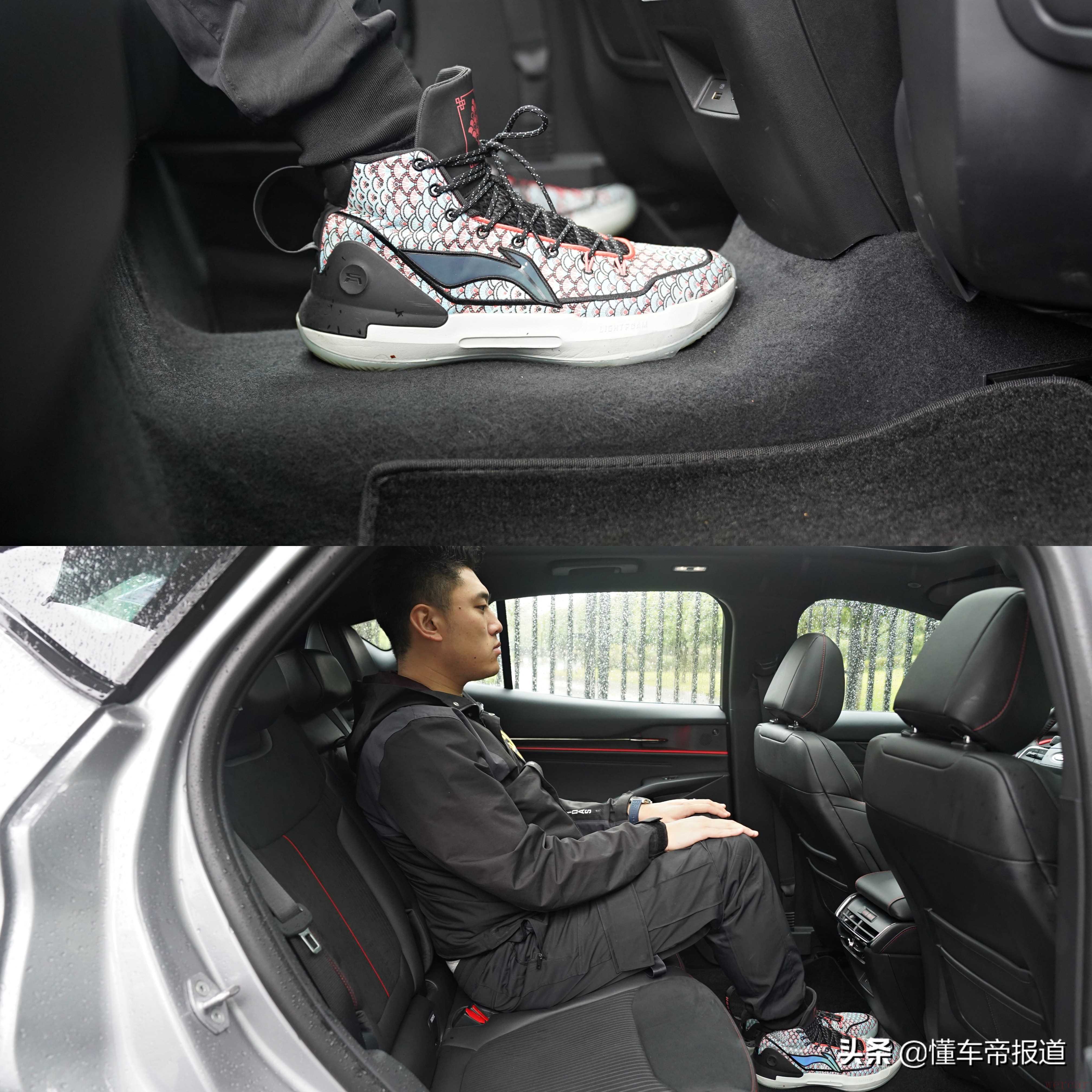 后排地台中央有小幅度隆起,但还是可以放下编辑44码的球鞋,如果乘坐三人,中间位置的乘客也不会感到不适。