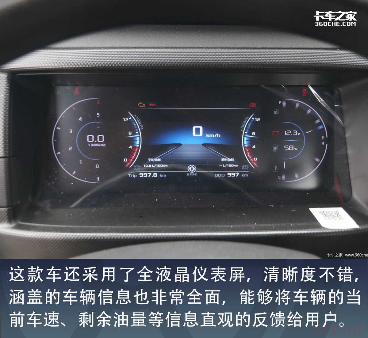 作为高端车型,这款车还采用了全液晶仪表屏,清晰度不错,涵盖的车辆信息也非常全面,能够将车辆的当前车速、剩余油量、尿素等信息直观的反馈给用户。