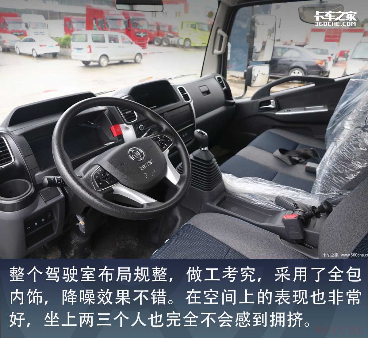 整个驾驶室布局规整,做工考究,采用了全包内饰,降噪效果不错。在空间上的表现也非常好,坐上两三个人也完全不会感到拥挤。