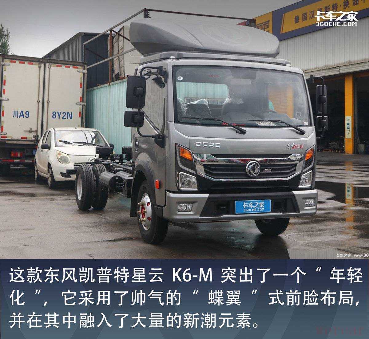 在外观方面,这款东风凯普特星云K6-M突出了一个“年轻化”,它采用了帅气的“蝶翼”式前脸布局,并在其中融入了大量的新潮元素,更符合当前年轻卡友的审美。