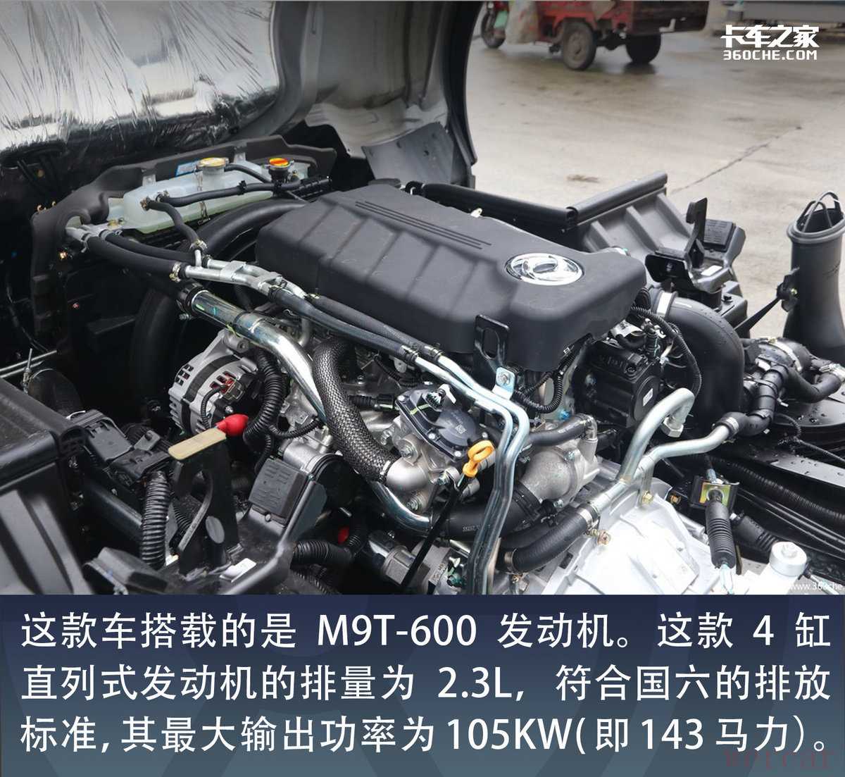这款车搭载的是M9T-600发动机。这款4缸直列式发动机的排量为2.3L,符合国六的排放标准,其最大输出功率为105KW(即143马力),在1400-2400rpm区间时就可以爆发出380牛米的峰值扭矩。