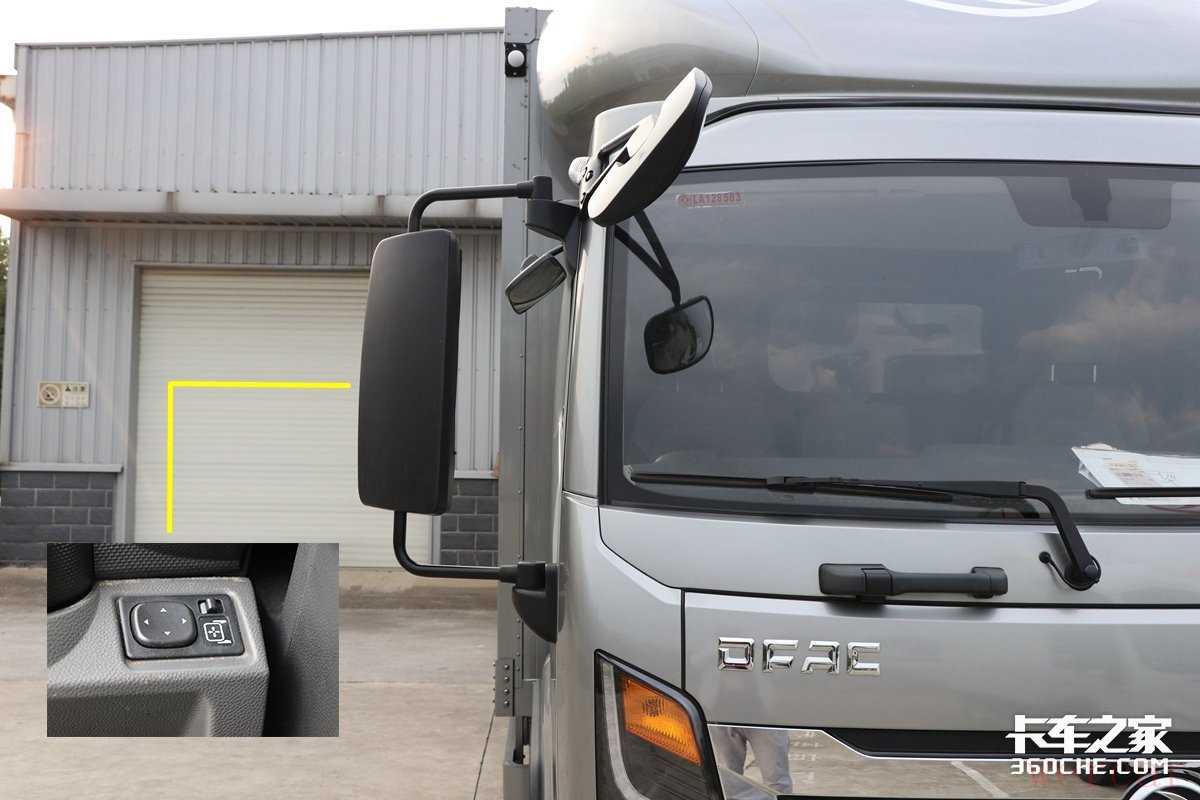 后视镜采用一体式设计,标配有两块照地镜。现在市面上的轻卡大多是采用分体式后视镜,主要就是保养维修时更方便,而一体式后视镜则更美观,还能降低一定程度上的风阻。另外,该车的后视镜还配置有电动调节及电加热功能,其布置在方向盘的左侧,很方便驾驶员的操作。
