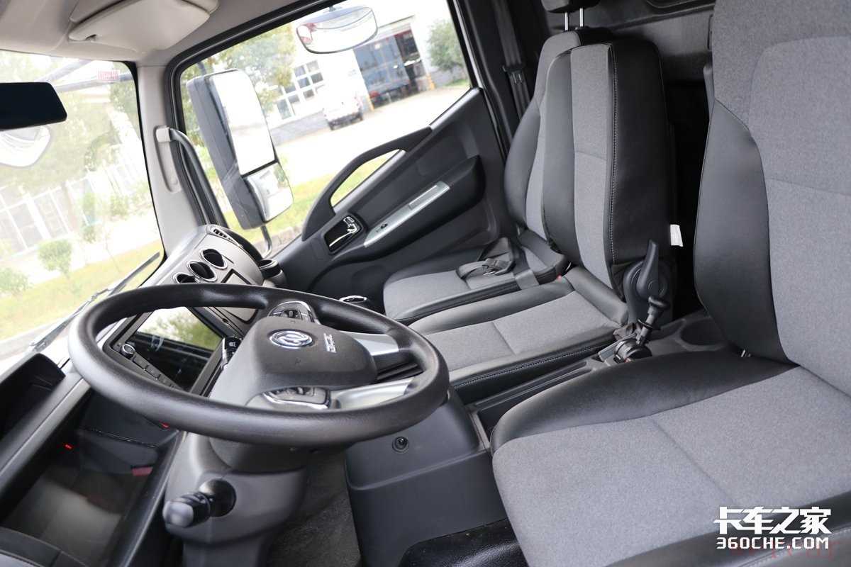 该车采用气囊减震座椅,这一配置在轻卡车型还是比较少见的。对于气囊减震座椅的舒适效果,相信开过重卡的卡友深有体会,比起普通座椅大幅度减轻了长时间驾车所带来的的疲惫感。