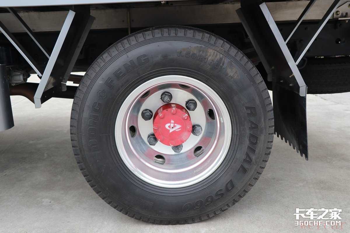实拍车型配备了东风品牌7.50R16规格轮胎,该轮胎具有出色的耐磨性和稳定性,属于经济性、性价比高的产品。该轮胎的轮圈为铝合金材质,而且是全车标配,很大程度上降低了车辆的自重。