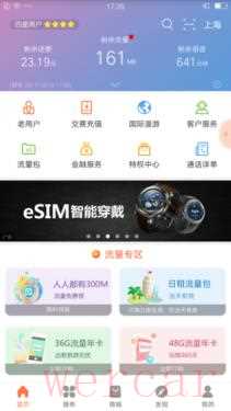开通的程序比较繁琐,需要下载联通“手机营业厅”的应用,在右上角把归属地切换到上海,然后你能在中间的广告栏找到eSim开通区域。费用是每个月10块钱,你会得到一个上海的号码+500MB流量+60分钟全国通话。