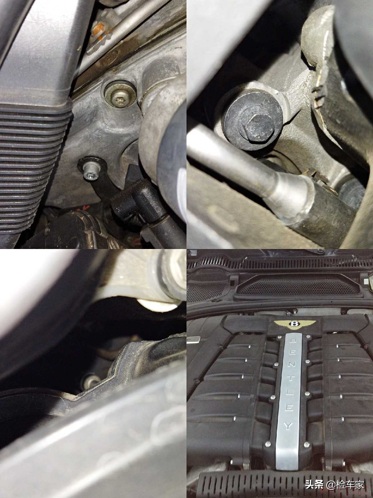 就近找了一家修理厂上架,发现发动机油底壳有一点渗油,变速箱油底壳也有点,但是对于这个年限的车来说很正常,没有漏得特别严重就问题不大,后期可以不用管它。不得不说宾利的质量还是杠杠的啊,要是换成同年份的BBA,肯定大多都不知道漏成啥样了。