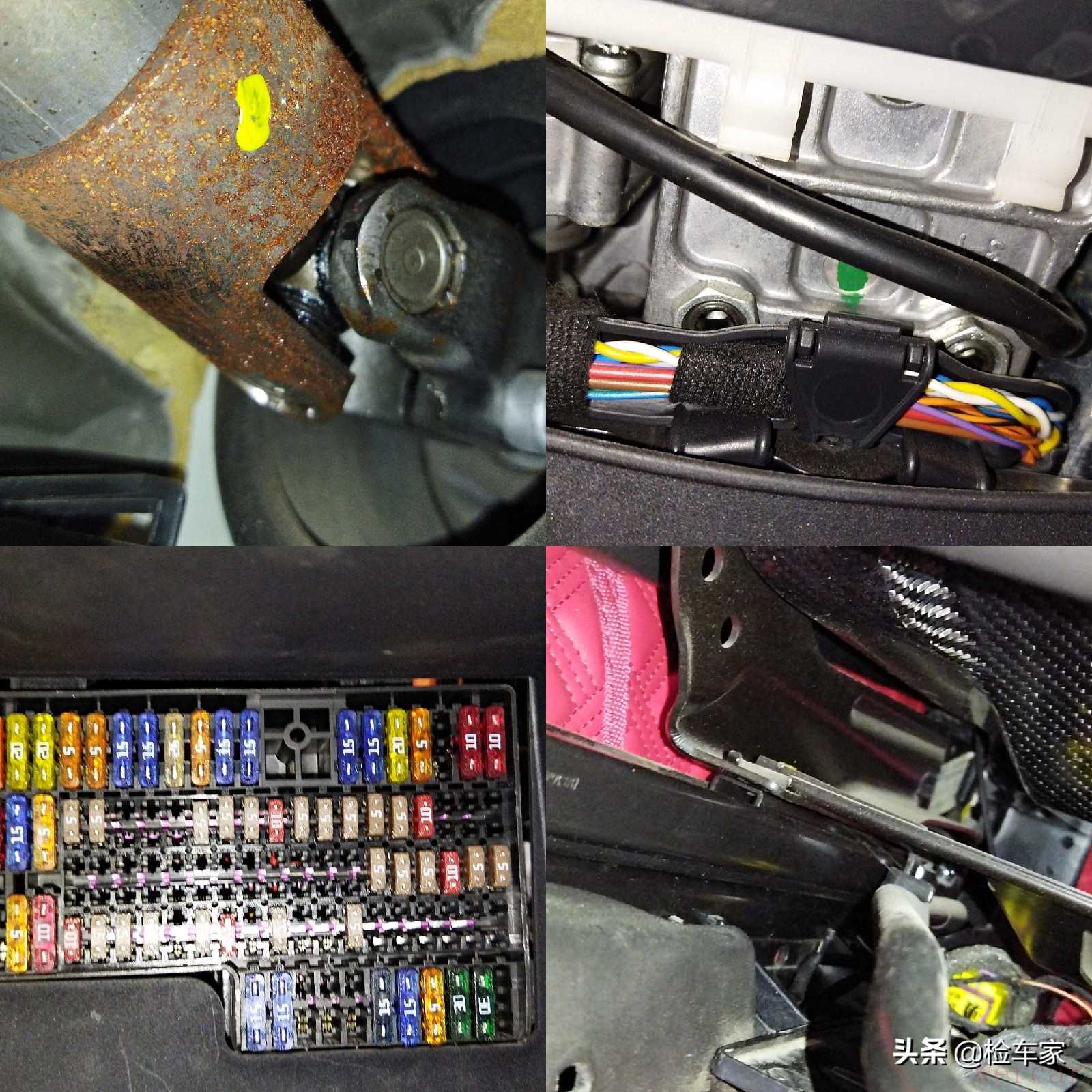 并且可以看到方向管柱有点正常的浮锈,仪表骨架、室内保险盒、座椅骨架均无异常,都是正常的年代灰尘,基本可以排除车辆泡水的可能性。