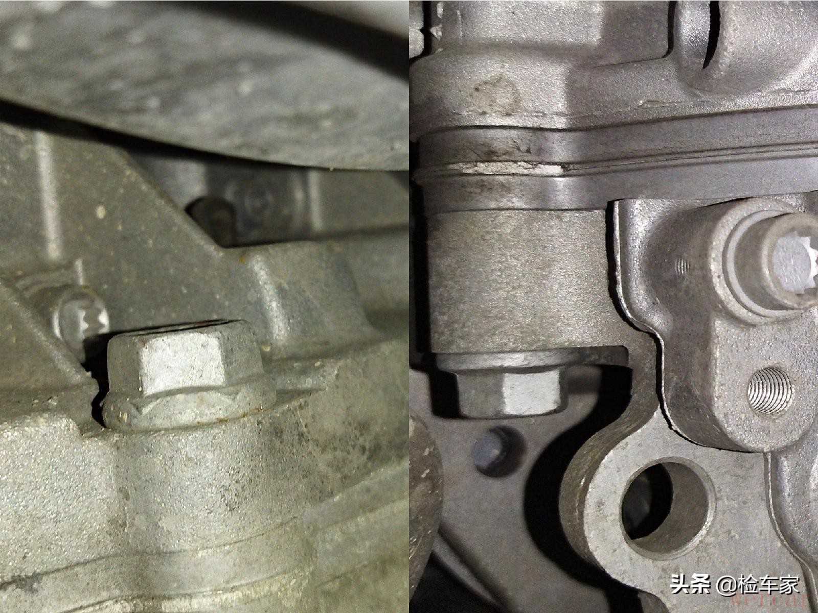 接着检查到发动机变速箱接合处螺丝无拆卸拧动痕迹,由此证明此车发动机变速箱都没有拆装维修过。