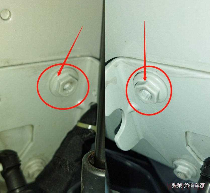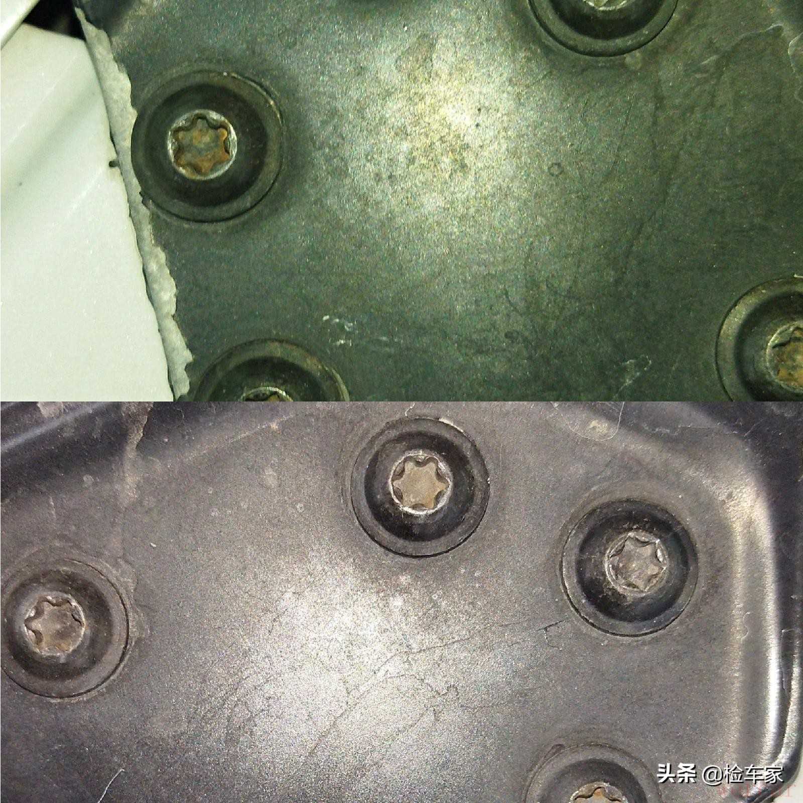 为了验证前部是否存在大事故,我又检查了下前机盖螺丝,发现并没有拆卸拧动痕迹,也无其它异常情况,检测到这里小布丁我基本能判断前面并不存在重大事故,也就右侧有轻微碰撞,但结构件都没有损伤到,属于小问题。