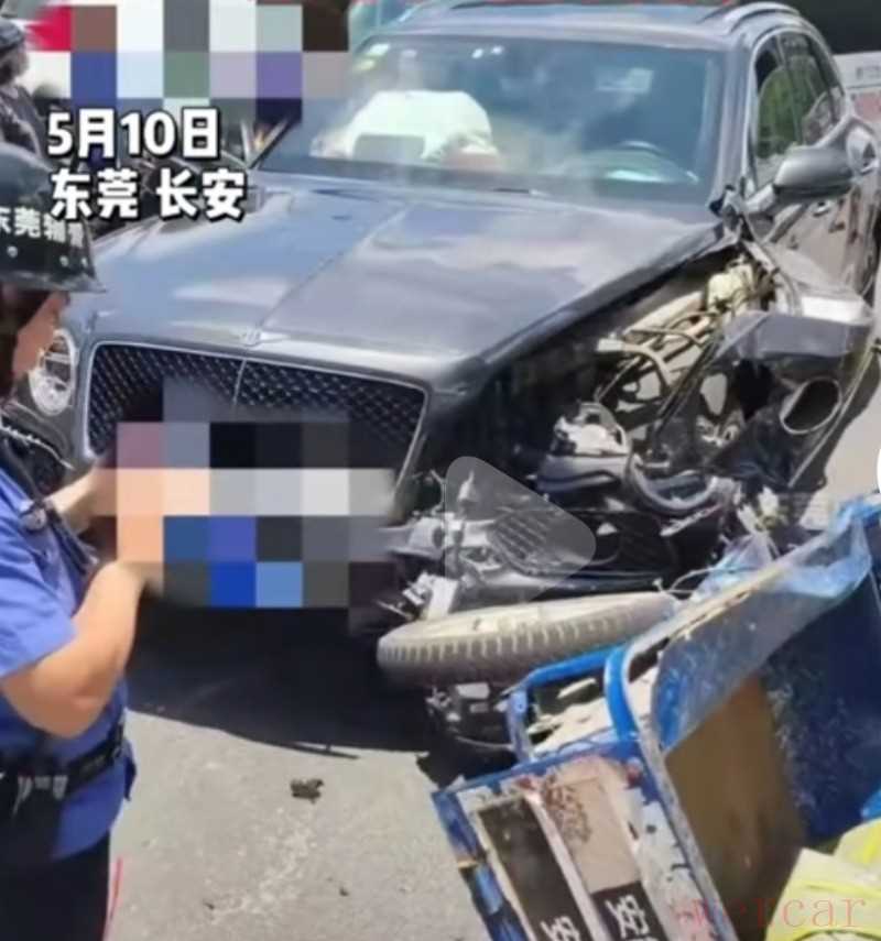 昂贵的车祸现场!东莞三轮车宾利相撞,宾利损毁惨重,网友热议,三轮车质量竟胜宾利?