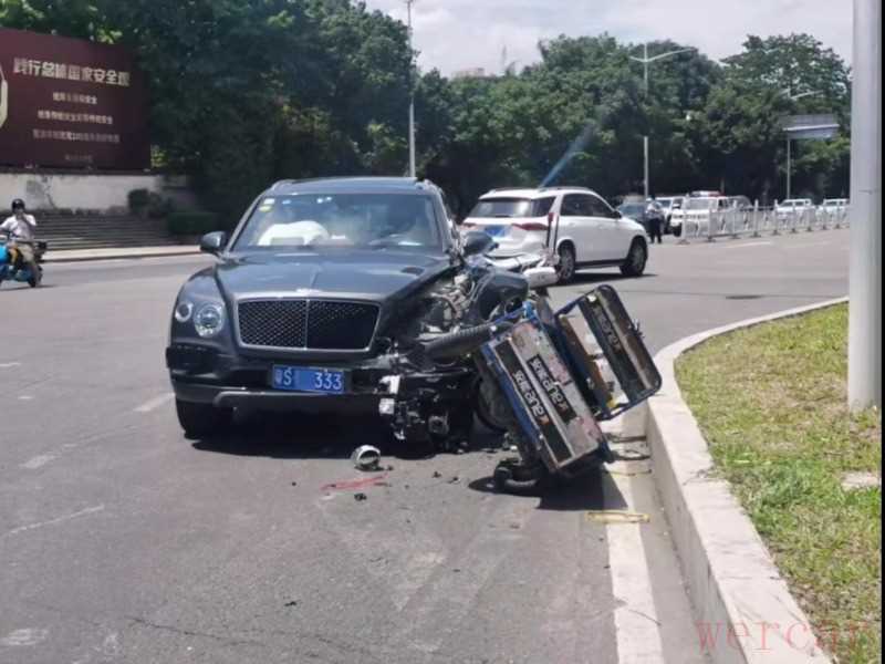 这是一起代价高昂的事故,宾利车主将面临巨大的维修费用。