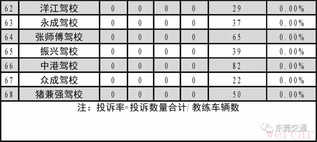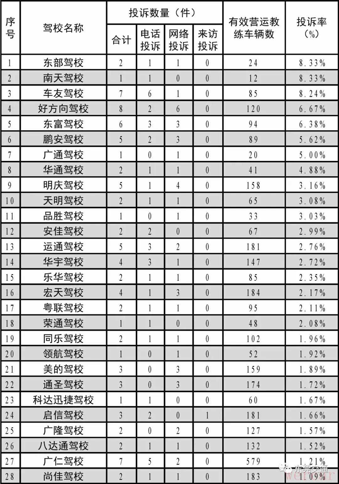 1 东部驾校 2 南天驾校 3 车友驾校 4 好方向驾校 5 东富驾校 6鹏安驾校 7 广通驾校 8 华通驾校 9 明庆驾校 10 天明驾校 投诉率是通过这个公式计算出来的