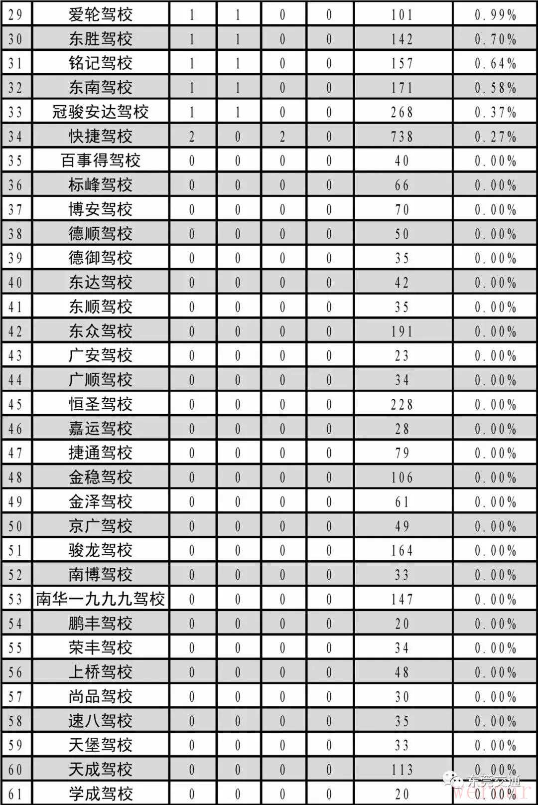 这个标题听起来像是某个媒体或平台发布的关于东莞驾校服务质量或考试通过率的半年报告。