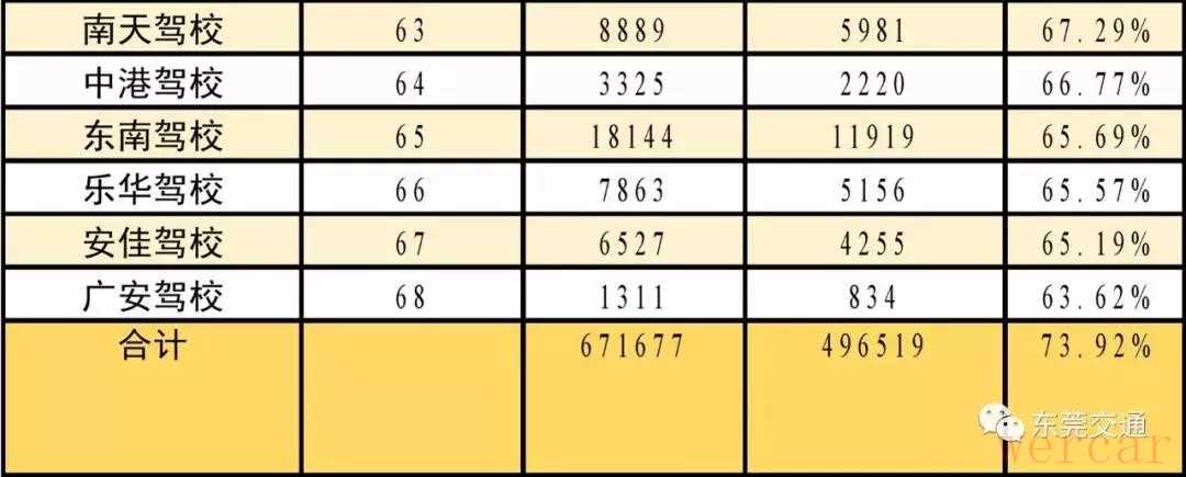 为提升东莞各驾校的教学质量,给广大考驾照的市民营造良好的学习环境,近日,东莞交通部门整理了我市今年1-6月份驾驶员培训机构考试质量,以及我市驾驶员考试的总体情况。
