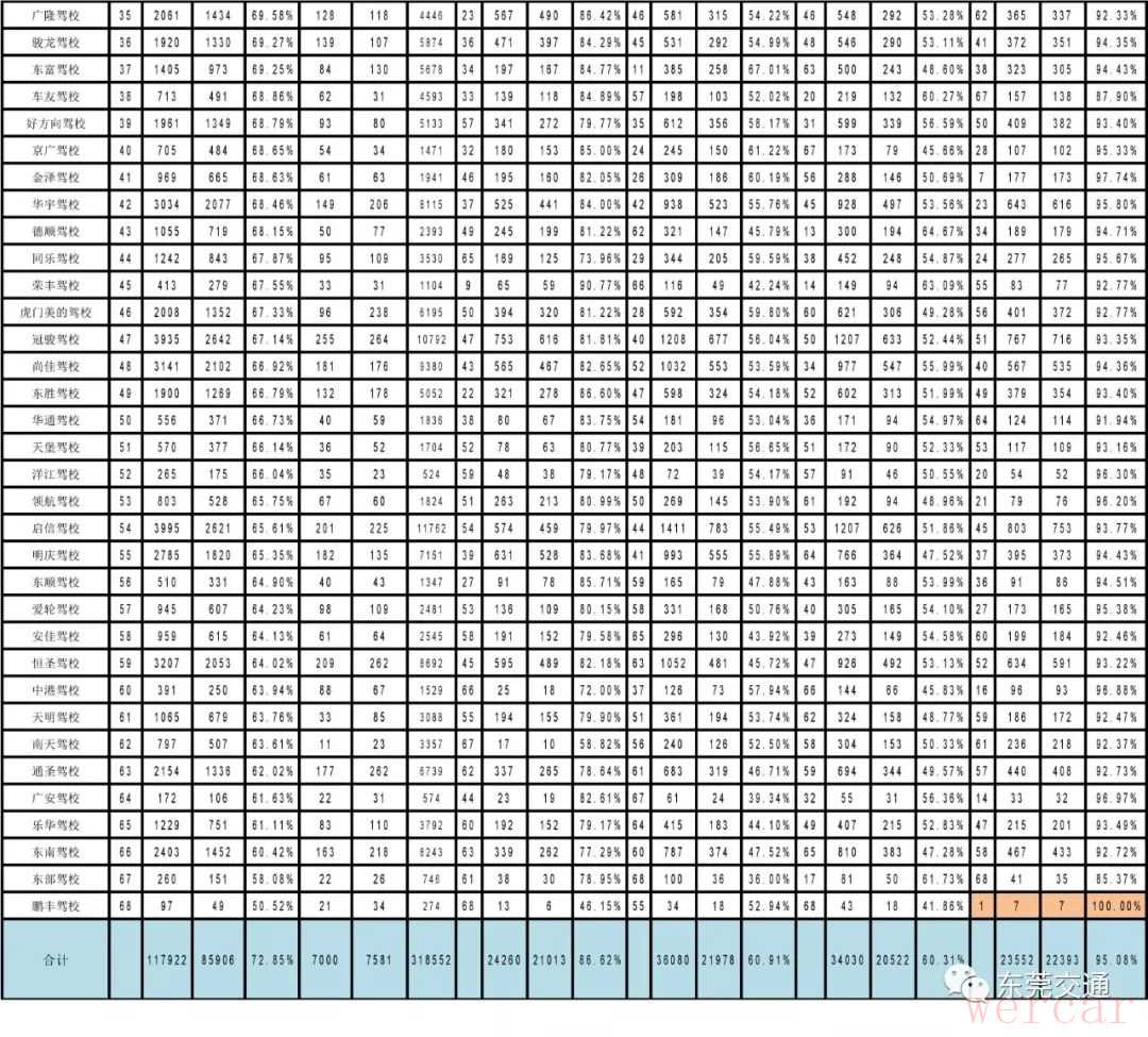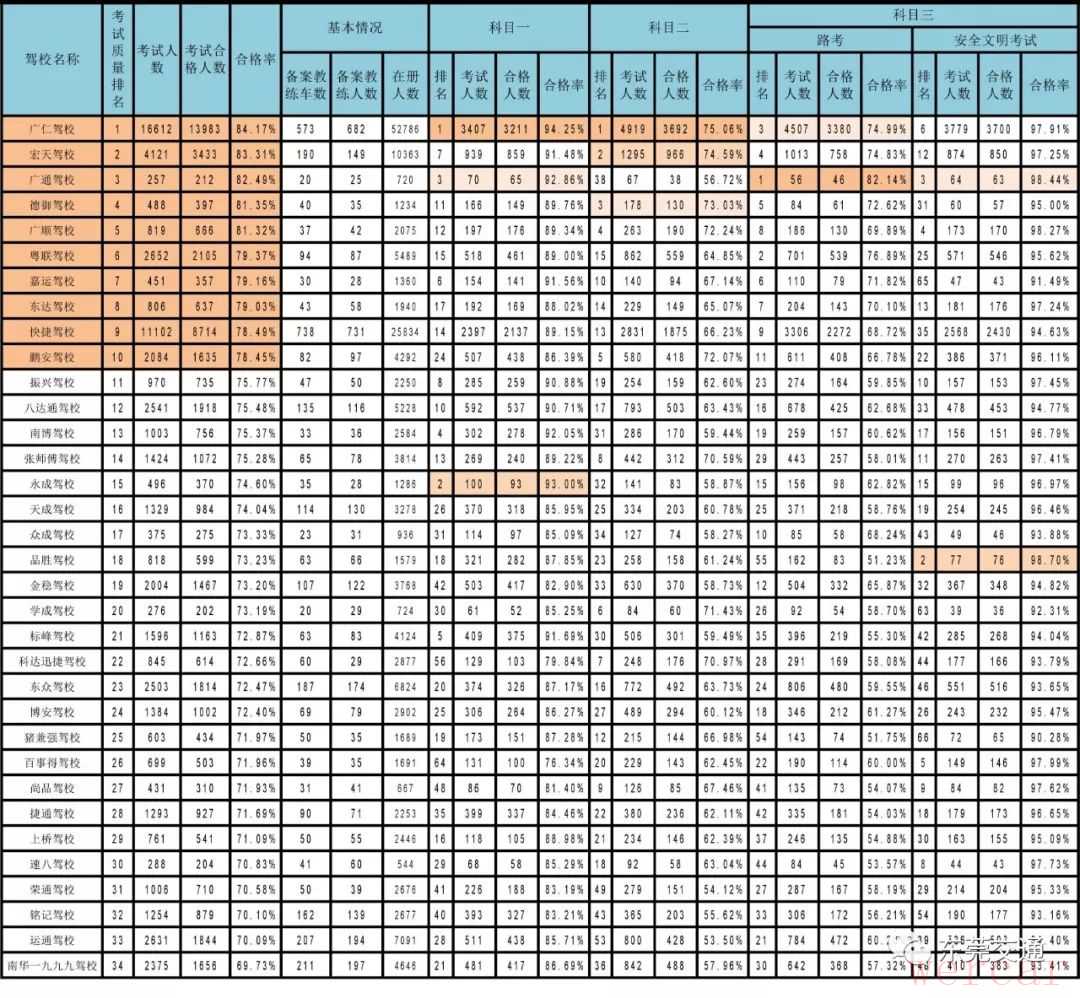为提升东莞各驾校的教学质量,给广大考驾照的市民营造良好的学习环境,日前,东莞交通部门整理了我市今年9月份驾驶员培训机构考试质量排名,以及我市驾驶员考试的总体情况。