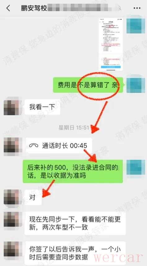 在得知此信息后,刘女士决定将报名从C1改为C2,但业务员表示需额外支付500元费用。刘女士支付了500元后,业务员在录入合同金额时表示,由于金额不一致,合同上不能写加上500元,否则无法提交至车管所。在刘女士多次质疑后,业务员才同意更改。最终,刘女士为C2驾照学车共支付了5380元,比其他学员多缴纳了1400元。