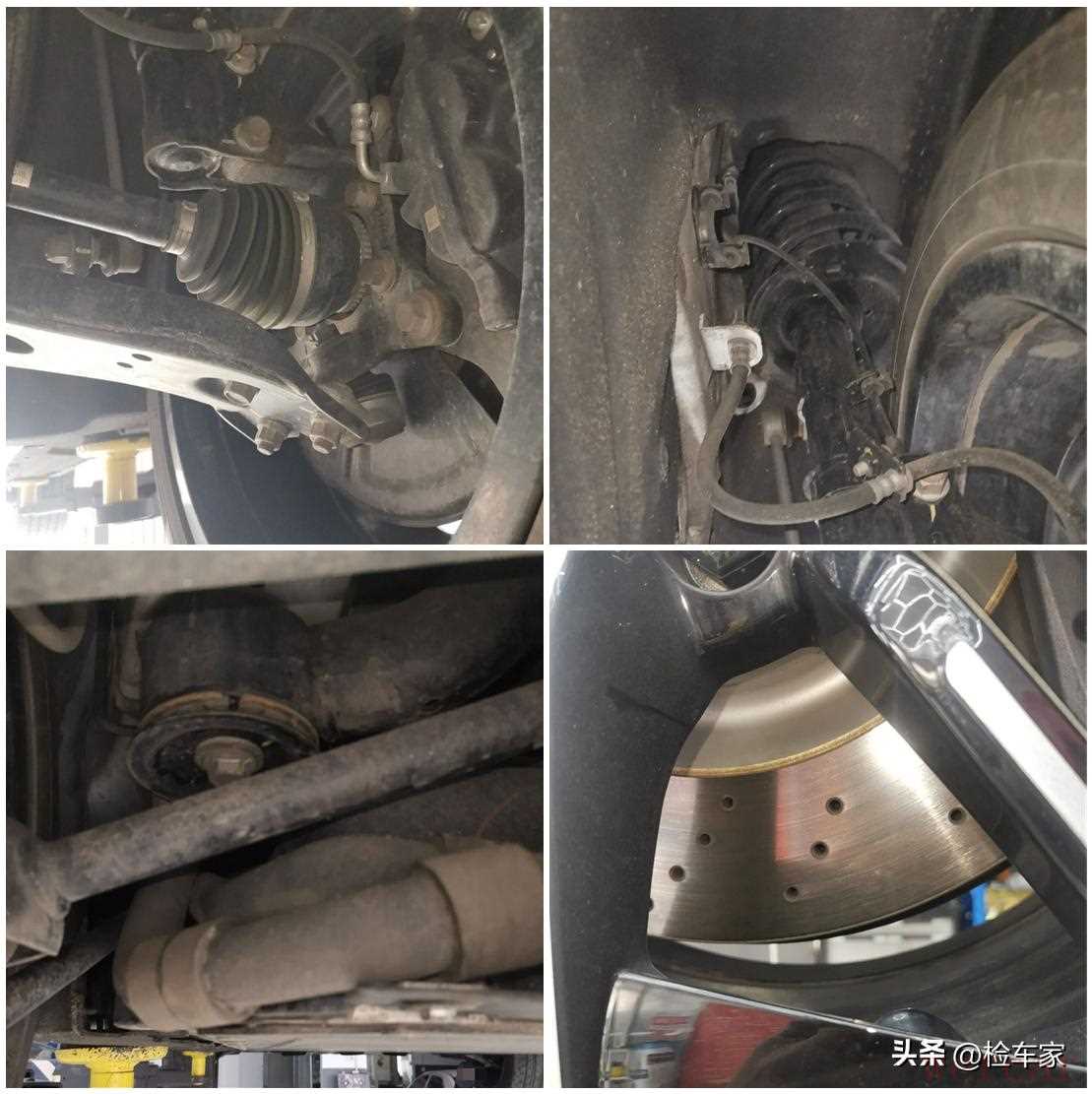 结合这辆车的之前的检测结果可以排除发生事故的可能,最后在再来看看悬挂和制动部分,均没有发现异常。到这里检测基本就结束了。我告诉客户这车和准新车的差别不大,虽然有一定的里程数,但是车况很不错。不仅没有更换件,也没有划痕和变形,事故、火烧、水泡都没有。