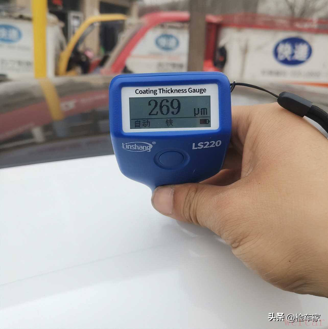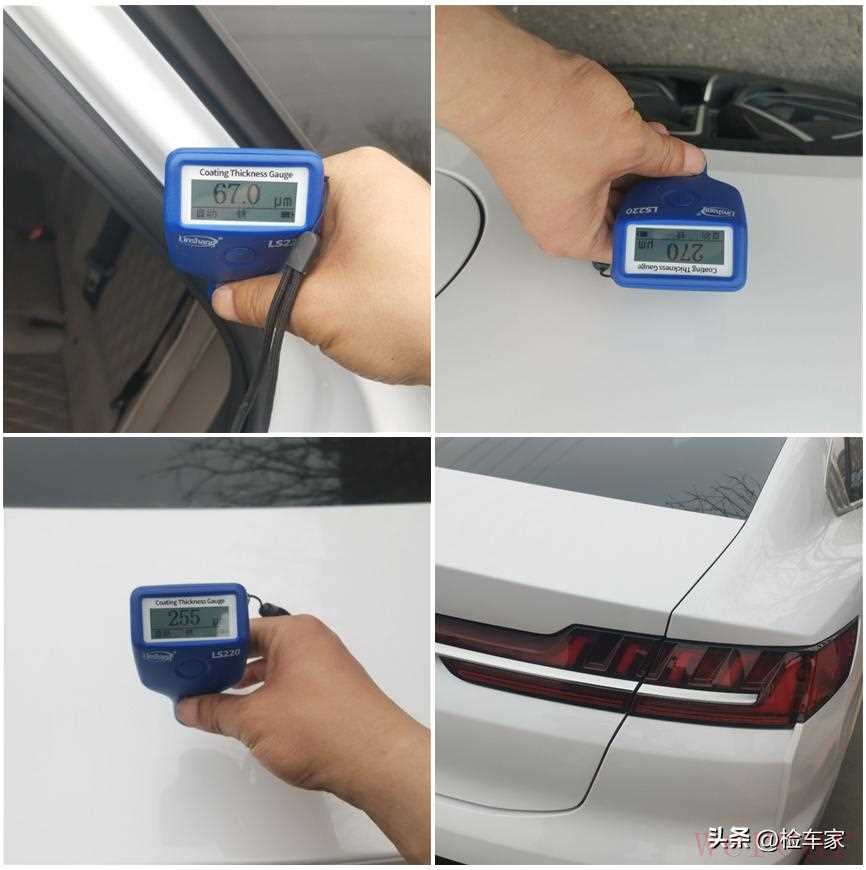 首先先在车顶取一个平均数值做参考,方便我后面判断全车的整体漆面数值。毕竟车顶做漆的几率最小,但也不排除原车主车技一流能将车翻过来的可能,那样就只能根据具体车型来综合判断了。
