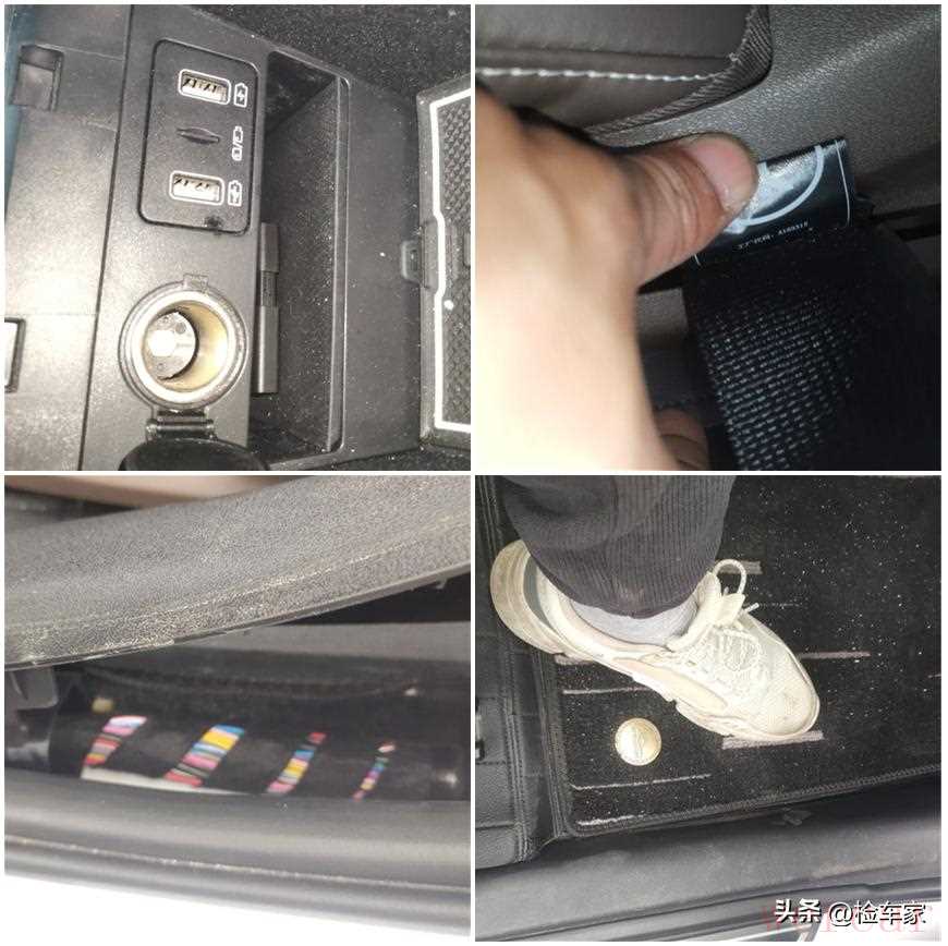 再来看一些细节处,点烟器座没有生锈的地方,安全带、门槛线束也没有发现发霉、泥沙的痕迹。副驾驶还很贴心地加装了一个地毯。也就可以排除水泡的可能了。
