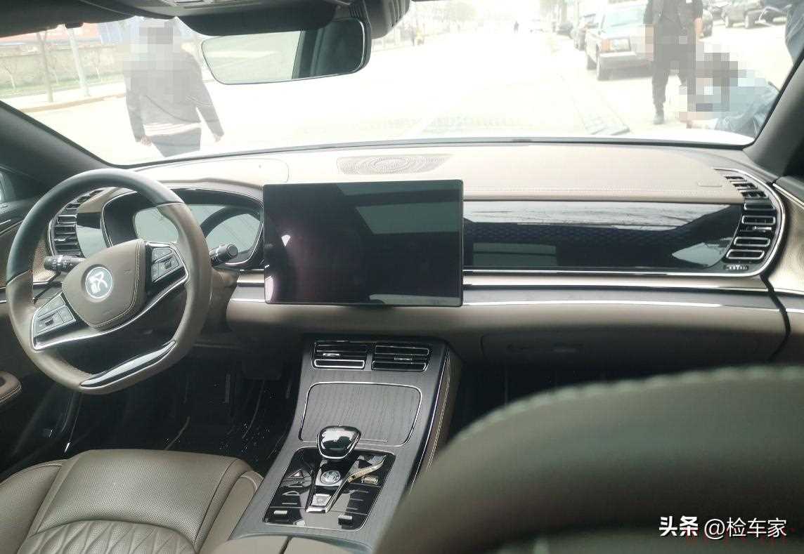 外观看完后我给了客户一个肯定的眼神就打开了车门,可以看到这辆比亚迪汉的内饰设计上以科技感为主,但是整体氛围的话和其他豪华品牌比还是要差一点的。15.6英寸的中控屏覆盖了车内大部分配置功能。