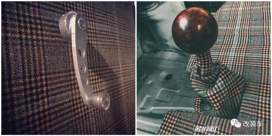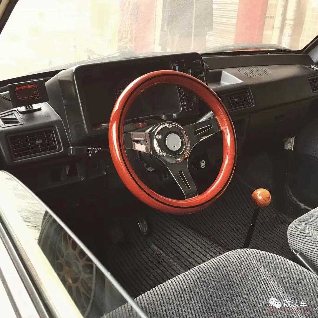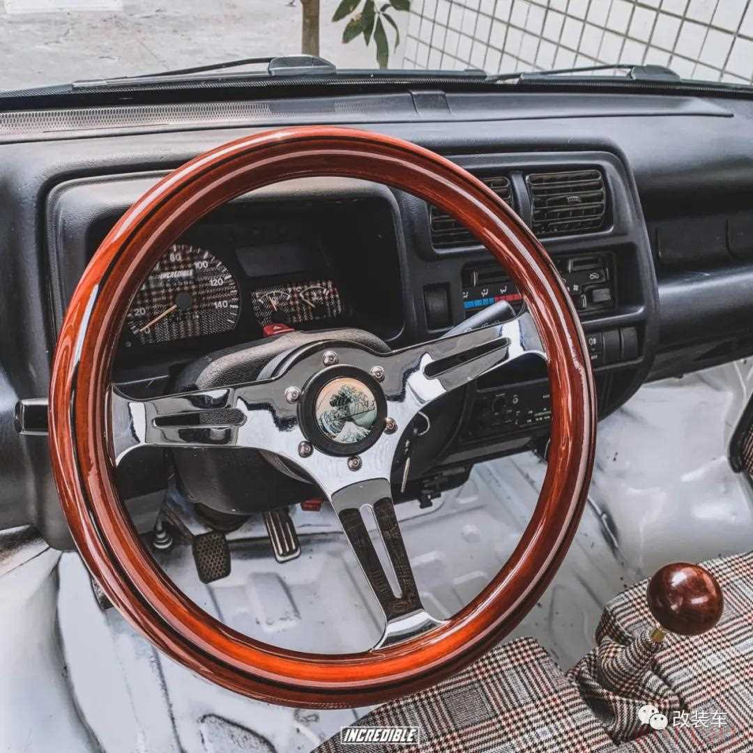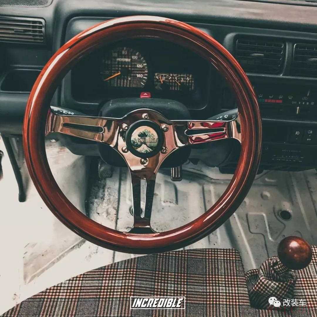 (有自己的工作室就等于有自己的小天地,太羡慕了)喷漆工作完成后,阿东便开始着手弄自己最擅长的内饰改装,把仪表台喷黑,换上桃木制的方向盘和换档头,很有古典的味道。