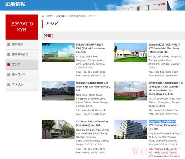 据澎湃新闻记者查询,KYB株式会社官方网站介绍称,其在中国上海、无锡、常州、镇江分别有KYB独资或者中外合资的子公司。其中,凯迩必机械工业(镇江)有限公司是日本KYB工业株式会社出资的100%独资公司,常州朗锐凯迩必减振技术有限公司系中外合资企业。这两家企业的业务范围主要包括机车及车辆用油压减振器、自动高度调整阀、差压阀及其它相关产品的设计开发等。